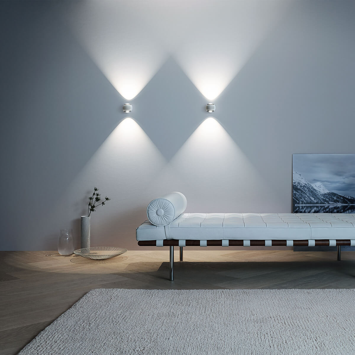 Eine der herausragenden Eigenschaften der Wandleuchte ist die integrierte Occhio VOLT light engine. Diese Technologie ermöglicht eine direkte Anbindung an die Netzspannung ohne externe Vorschaltgeräte, was die Installation vereinfacht und das Design schlank hält. Die Möglichkeit, optische Einsätze einfach zu wechseln und zu konfigurieren, verstärkt die Flexibilität und Individualität der Lichtwirkung.