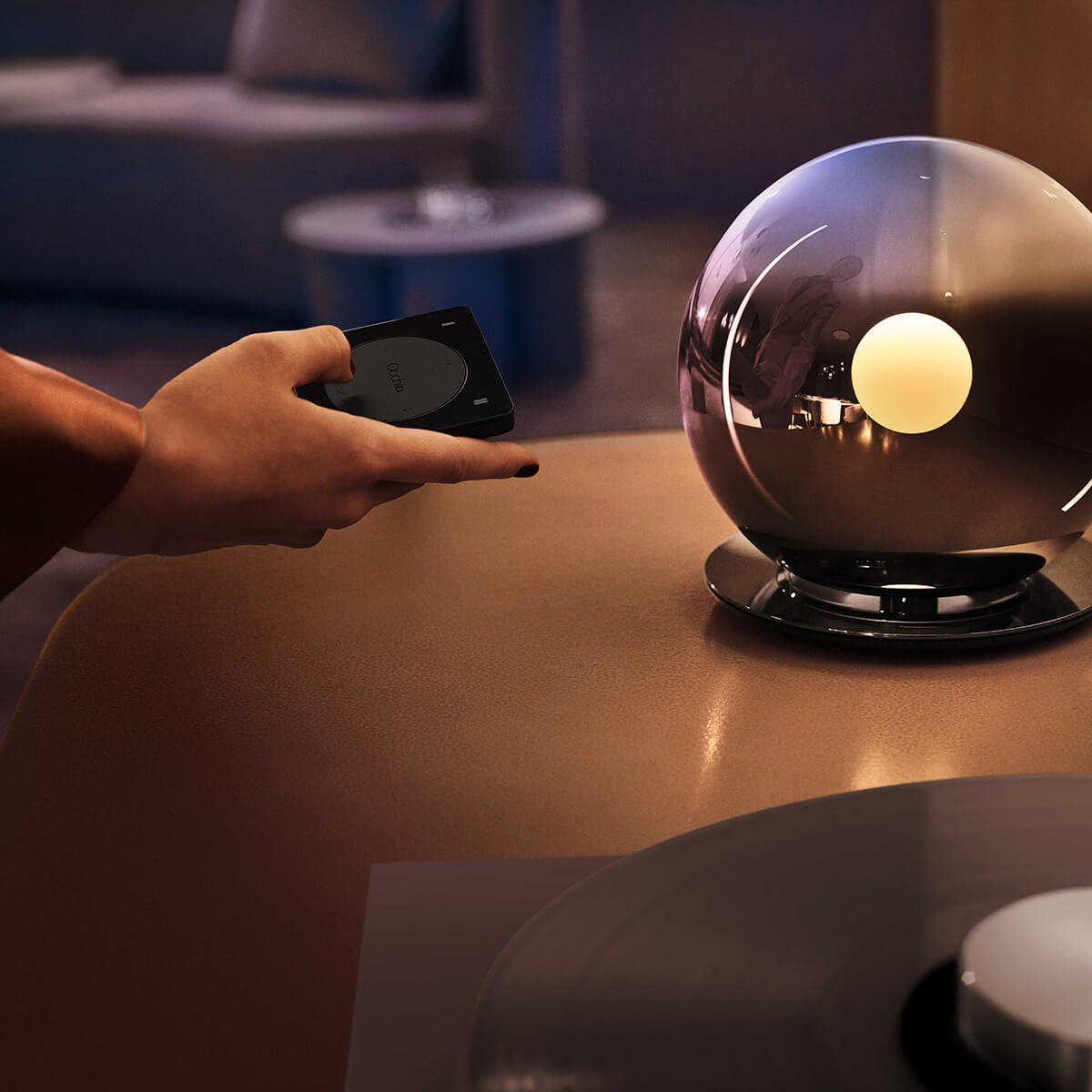 In puncto Bedienkomfort begeistert die Tischlampe mit den für Occhio typischen Funktionalitäten. Sie verfügt über eine innovative Gestensteuerung (touchless control), durch die sich Lichtintensität und Farbtemperatur stufenlos via Geste regulieren lassen. Die beiden Sensoren befinden sich am Leuchtensockel.