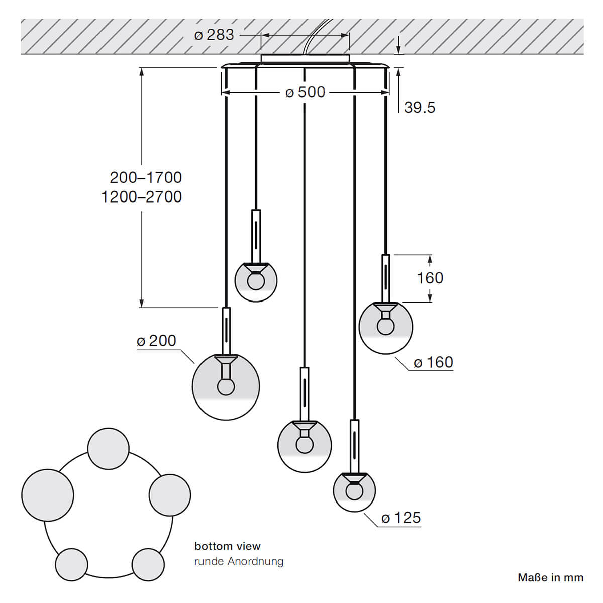 - Die Pendellängen der einzelnen Glaskugeln lassen sich bei der Montage fest einstellen