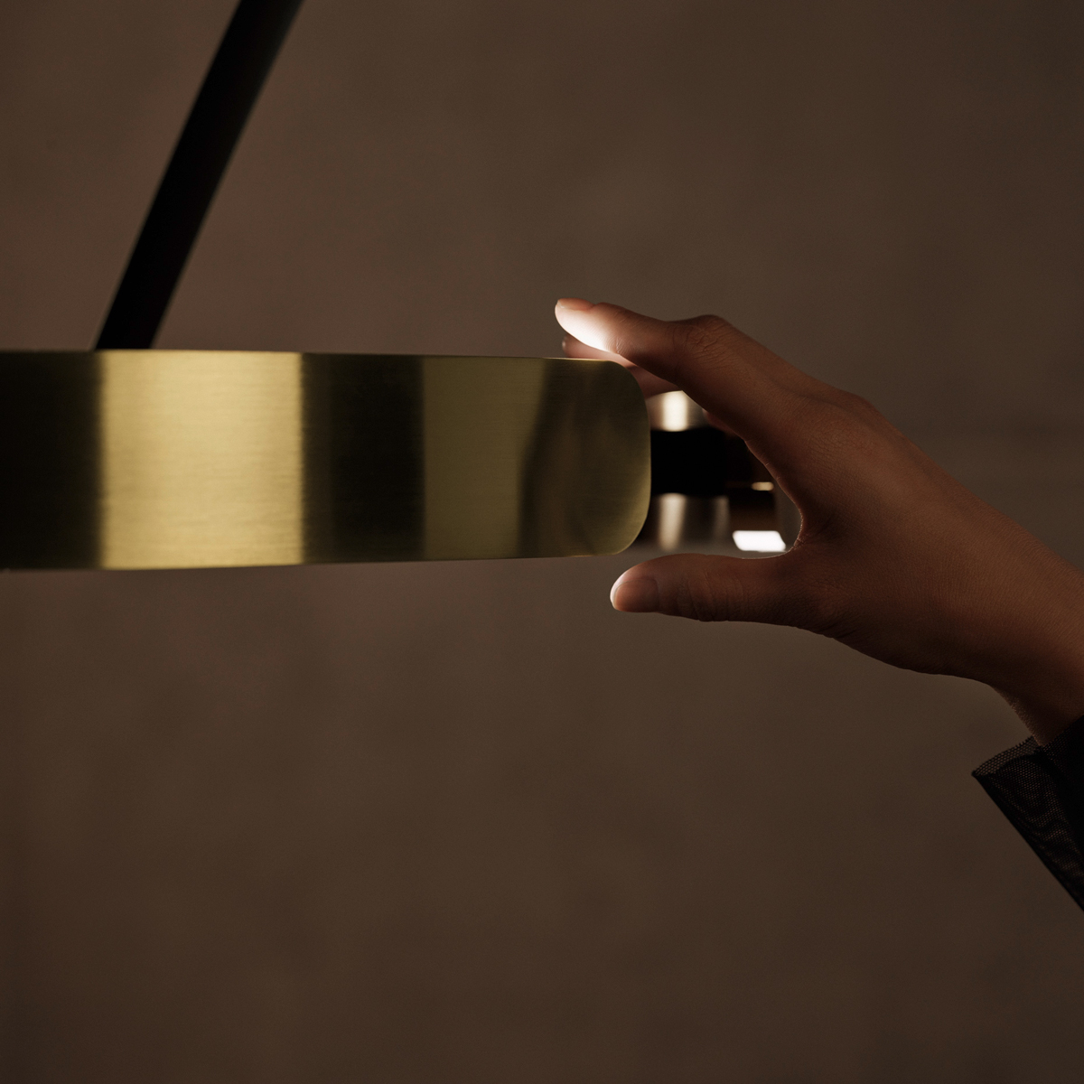 Alternativ lässt sich die Mito largo Stehleuchte über die im Kopf integrierte Gestensteuerung in ihrer Lichtintensität variieren.