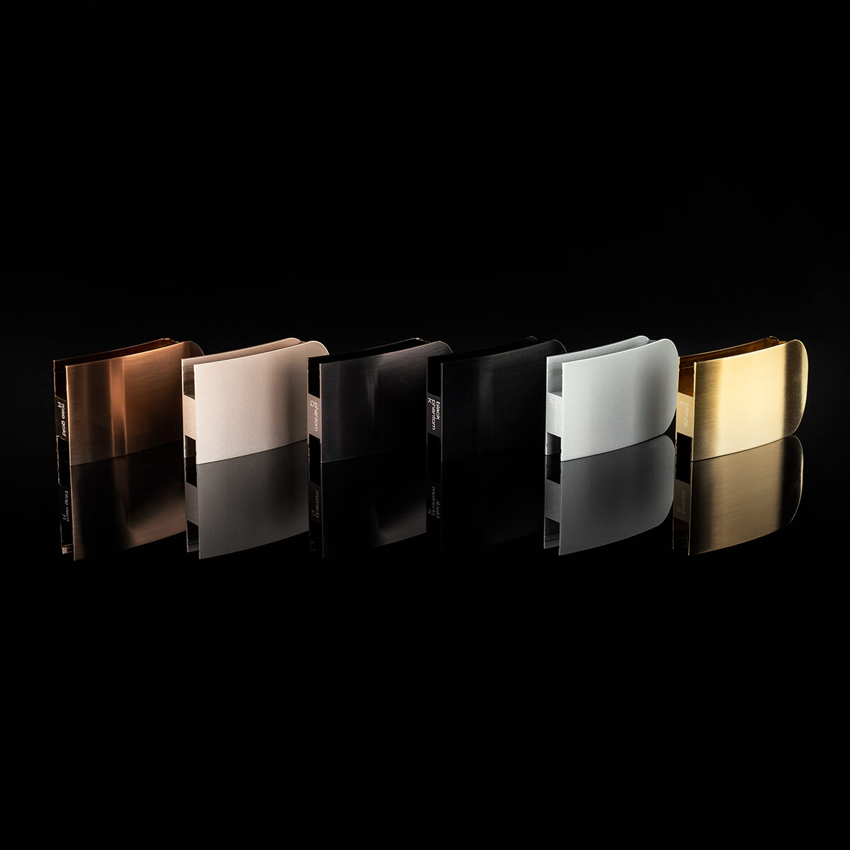 In der Oberflächen-Musterbox finden sich sechs verschiedene Farbmuster des Mito Rings: neben den wunderschönen Nuancen Silber matt und Gold matt auch die hochwertig metallbedampften Oberflächen Roségold, Bronze, Phantom und Black phantom, deren Farbtiefe und handgebürstetes Finish beeindruckende Akzente setzen. Probieren Sie es aus und holen Sie sich ein Ansichtsexemplar der Occhio Musterbox zu sich nach Hause!