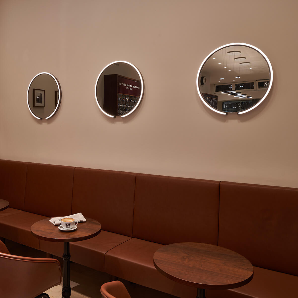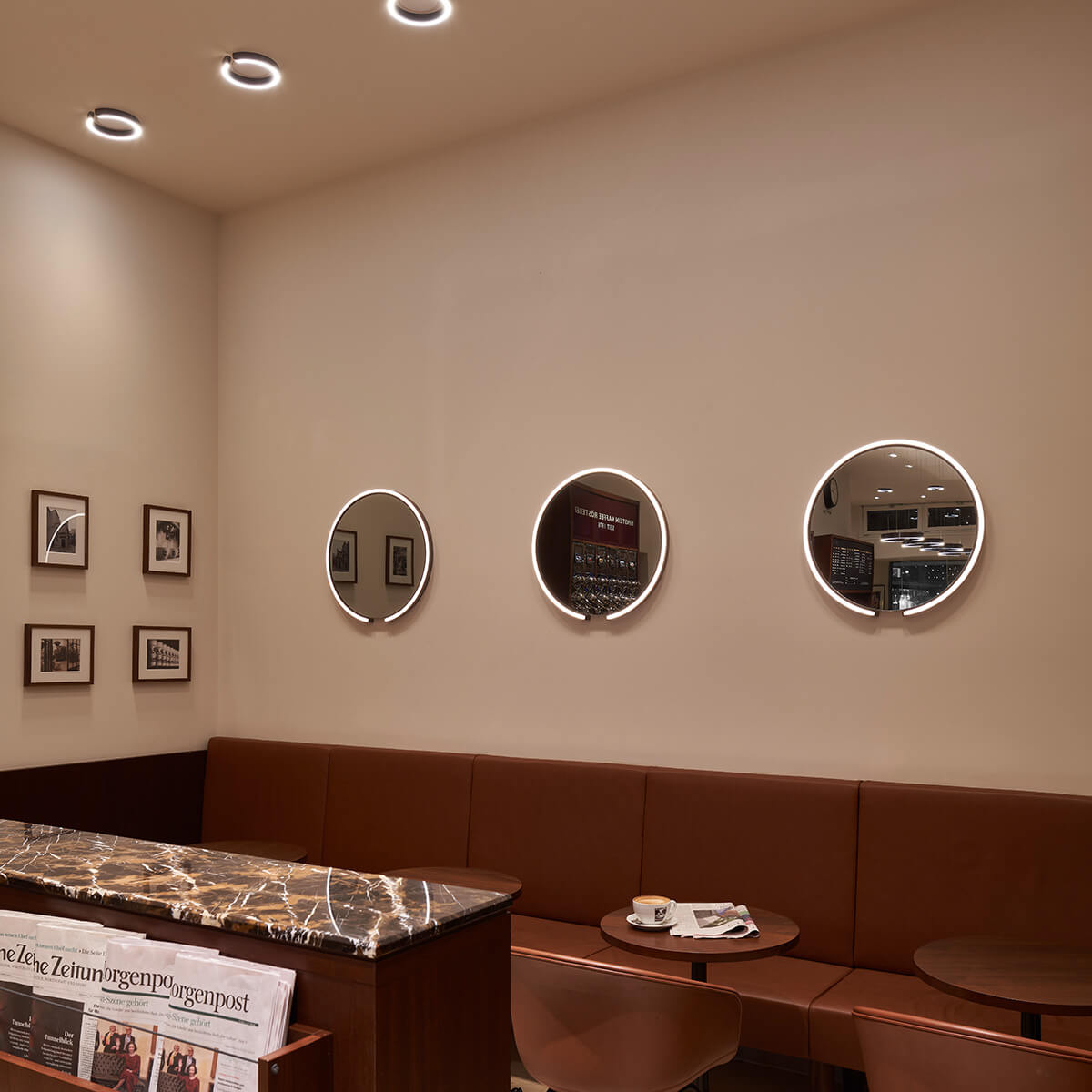 - Ringförmige Wandlampe mit integrierter Spiegelfläche in grauer Tönung