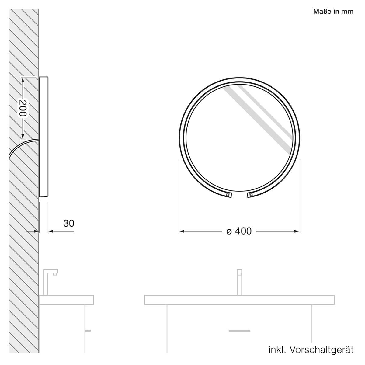 - Ringförmige Wandleuchte mit integrierter klarer Spiegelfläche