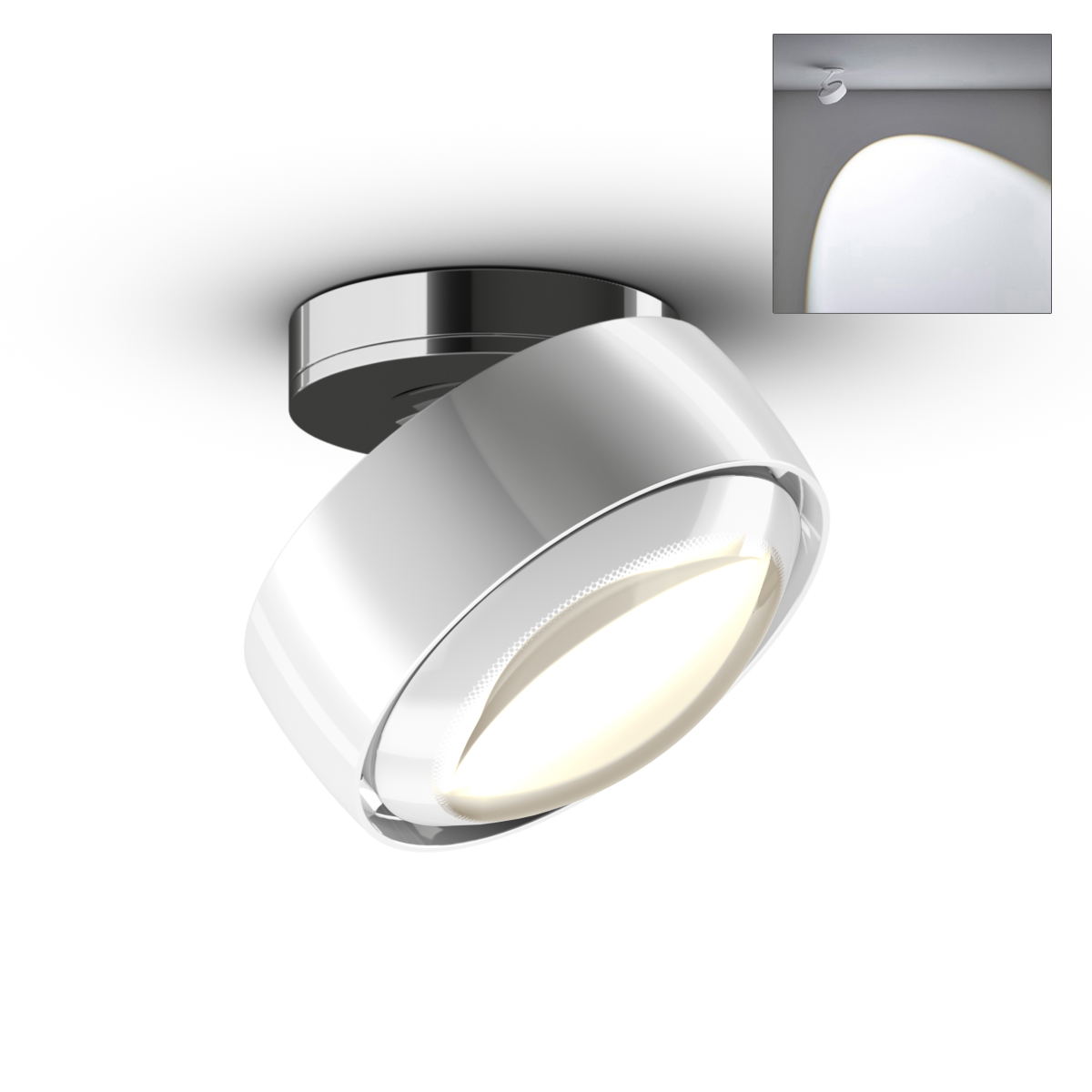 - Moderner Deckenstrahler mit Linse für ein gerichtetes Licht mit klar konturiertem Lichtkegel (Ausstrahlungswinkel ca. 80°)