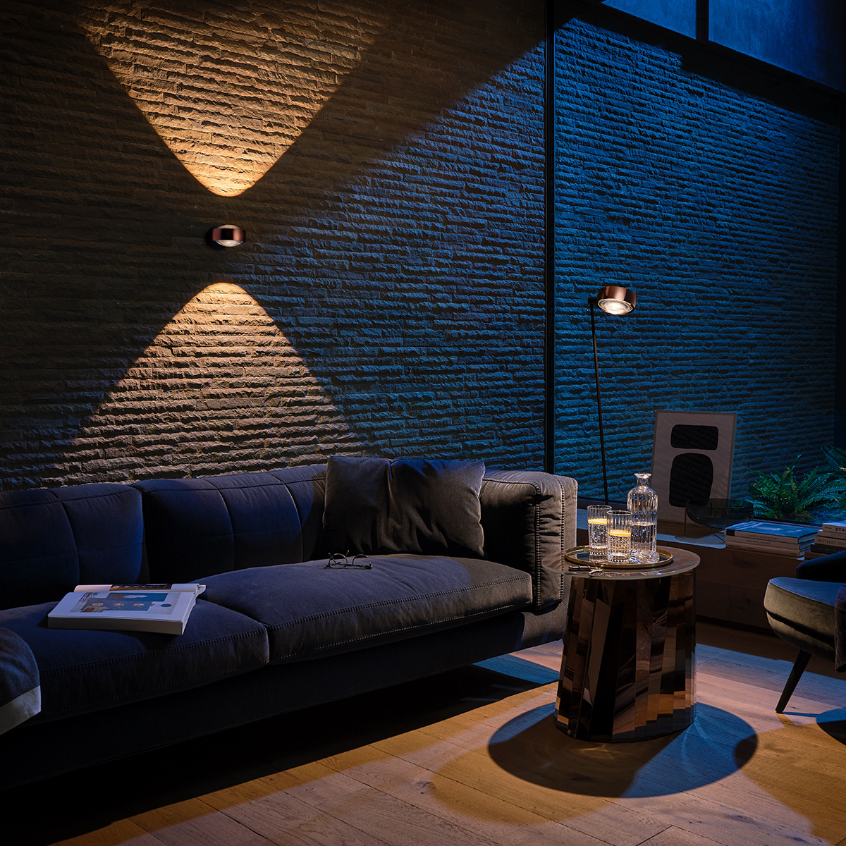 Die Sento verticale up von Occhio veredelt Ihre Räume mit exzellenter Lichtqualität und herausragendem Design. Die Wandlampe fasziniert mit ihrer klaren Formgebung und einer edlen Farbgestaltung, die ihr auch im ausgeschalteten Zustand eine beeindruckende Präsenz verleiht. Dank aufwendiger Oberflächenveredelungen wie Phantom, Roségold oder glänzendem Chrom avanciert sie zu einem exklusiven Designelement in Ihrem Interieur.