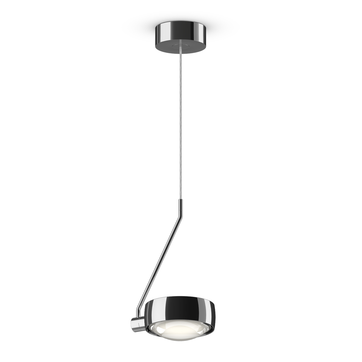 Bei der hier angebotenen Version der Occhio Sento E filo singolo fix up LED Pendelleuchte wird die gewünschte Pendelhöhe bei der Montage festgelegt (nachträglich nicht veränderbar). Auf Wunsch ist das Modell auch mit einer Seillänge von max. 280 cm erhältlich, ferner mit einer Farbtemperatur von 3.000 Kelvin.