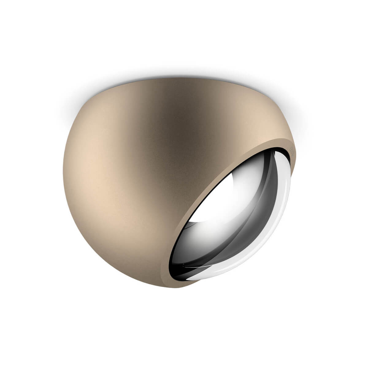 - Mit sphärischem Glas und kleiner Linse für ein direkt ausgerichtetes Licht mit klar konturiertem Lichtkegel (ca. 80°)