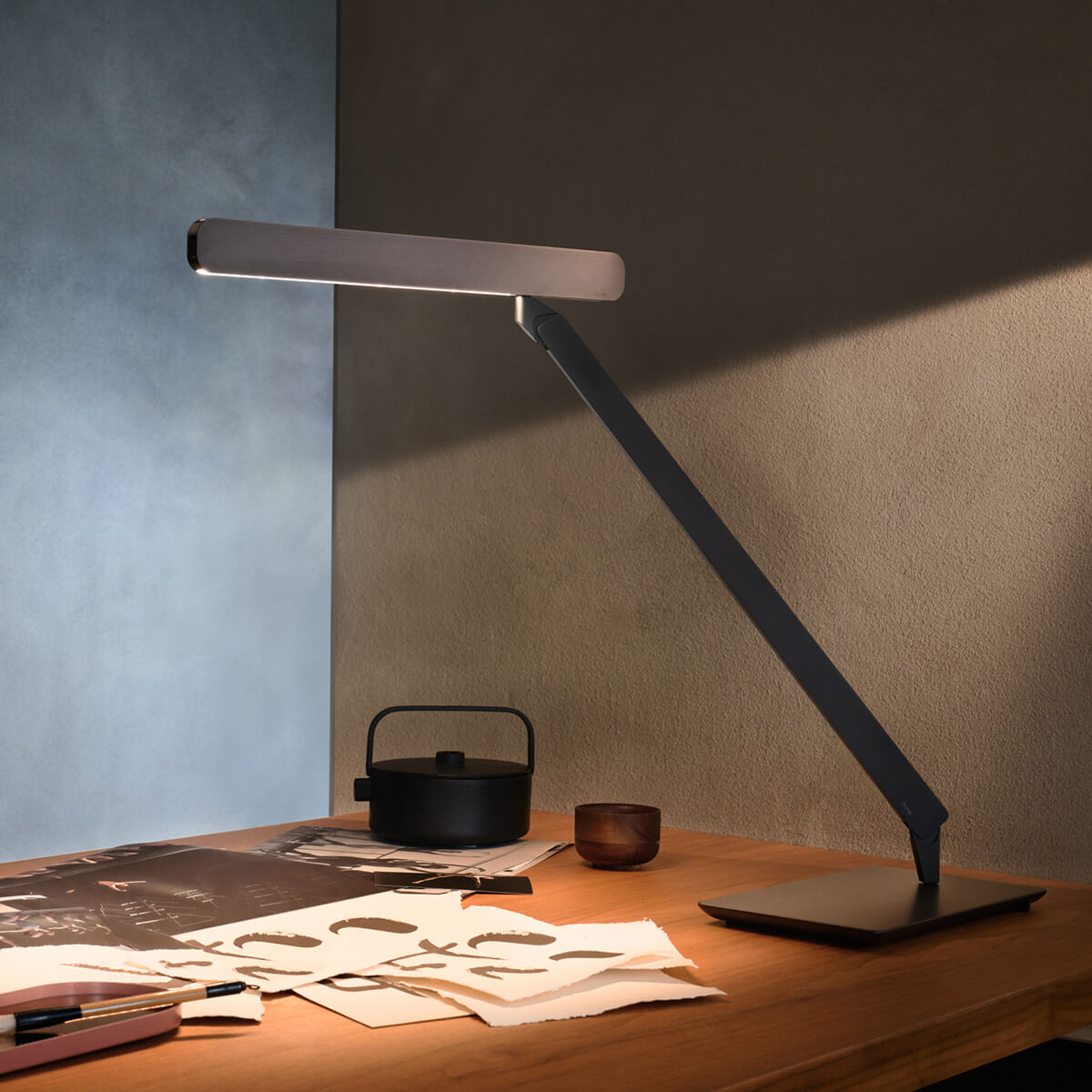 Markant, geradlinig, faszinierend beweglich: Taglio tavolo beeindruckt durch ihr elegantes Design, innovative Bedienfunktionen und ein qualitätvolles Licht, das sich nach Belieben dirigieren lässt. Die Leuchte eignet sich perfekt als Tisch- sowie Leseleuchte im Homeoffice oder Workplace. Mit ihren erlesenen Oberflächen avanciert sie zu einem exklusiven Lichtobjekt, das alle Blicke auf sich zieht.
