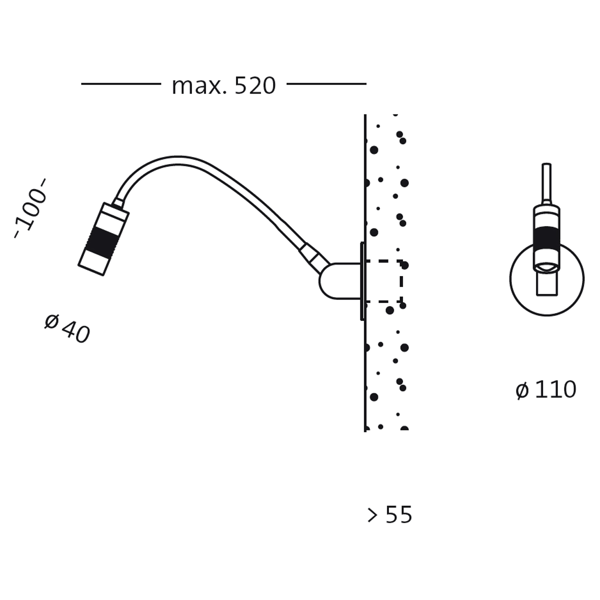 | Material/surface: | Polished aluminium / black anodized, flex arm: textile cover |