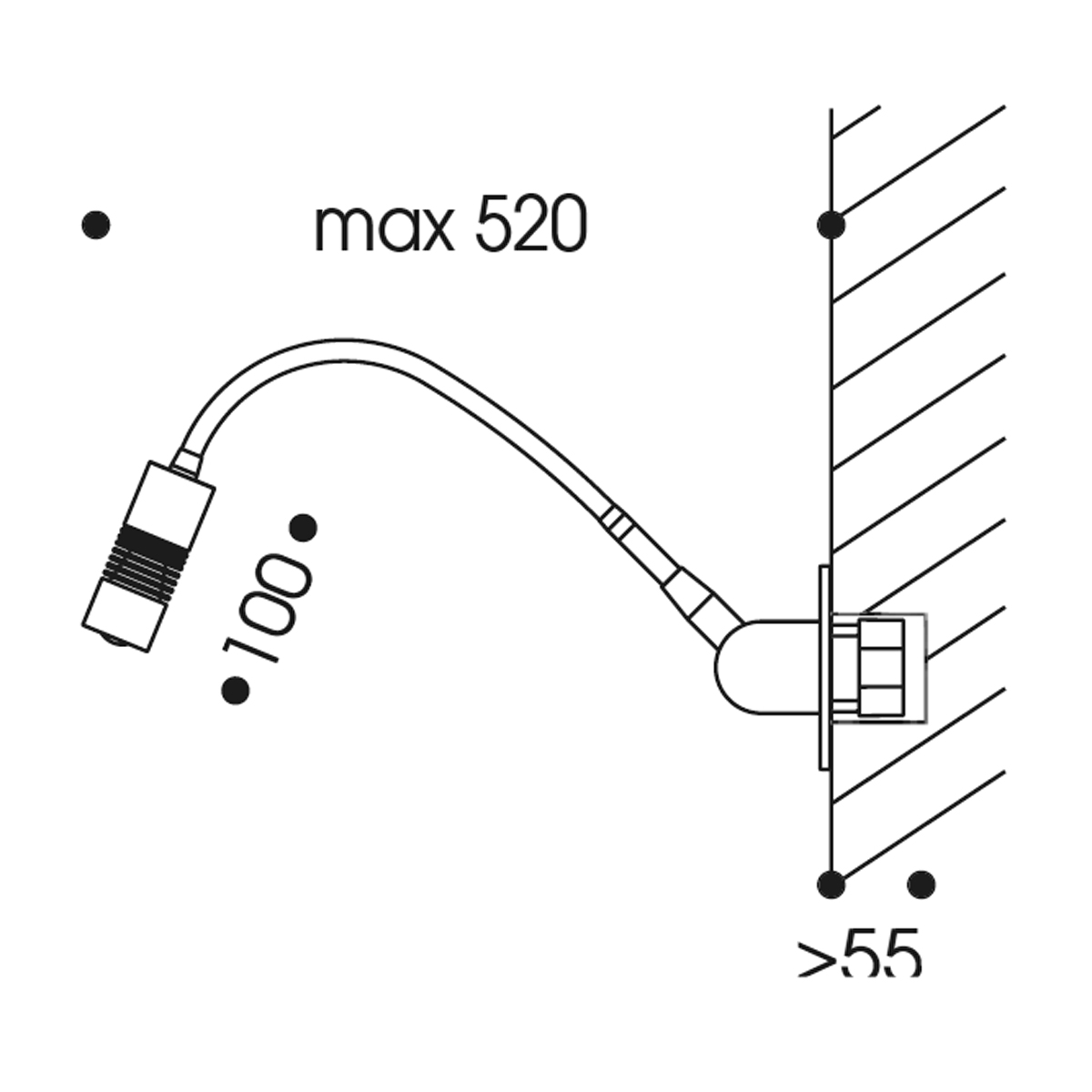 - Wandeinbauleuchte mit Flexarm (Abzweigdose Ø 68 x 61 mm bauseits erforderlich)