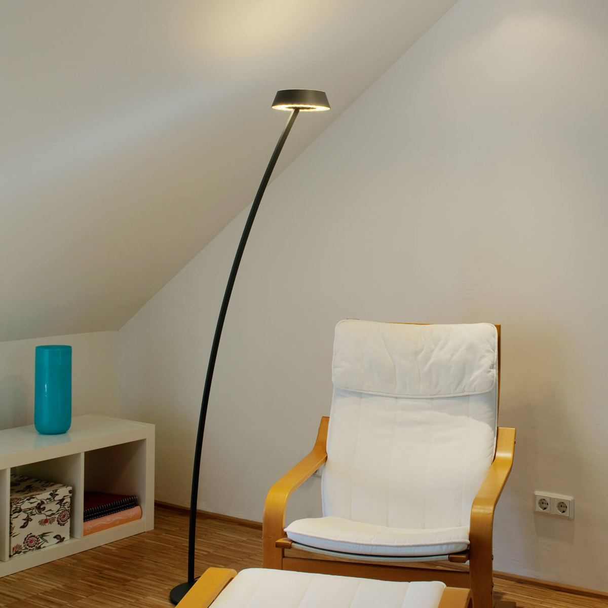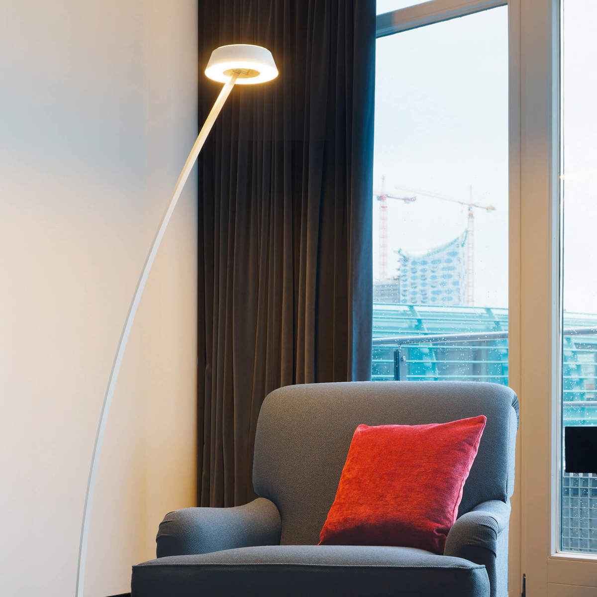 Energieeffizient und bequem: Das Licht der Glance LED Stehleuchte begleitet Sie auf Wunsch beim Verlassen des Raumes oder beim Zubettgehen. Wird der Sleep-Tight-Modus aktiviert, dimmt die Leuchte nach 2 Minuten gleichmäßig herunter und schaltet sich abschließend vollständig aus.