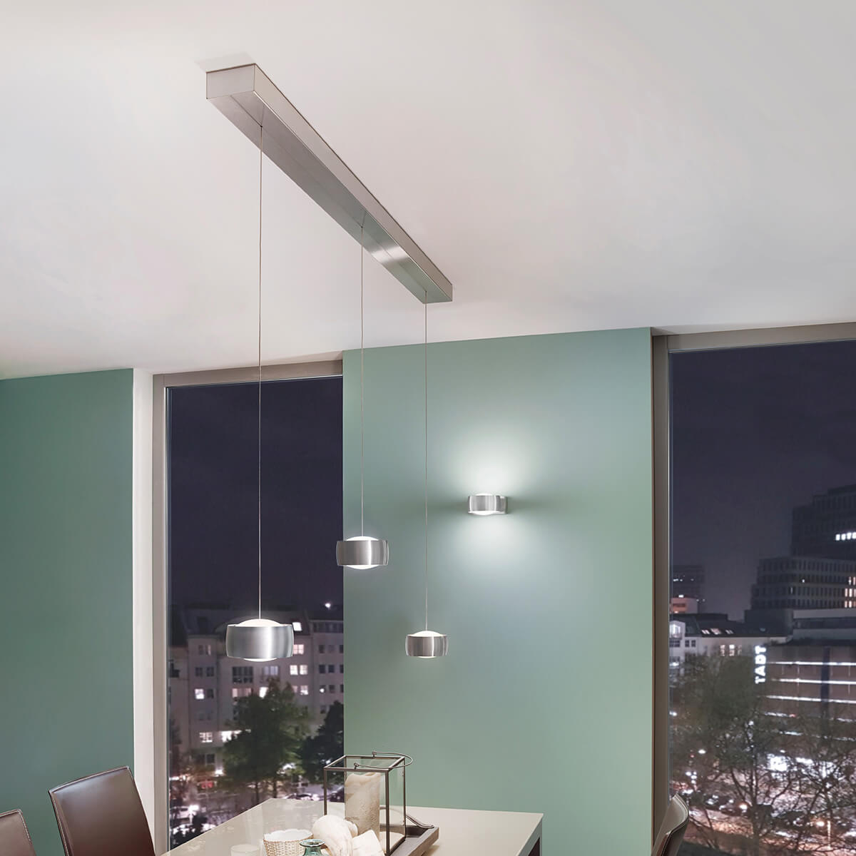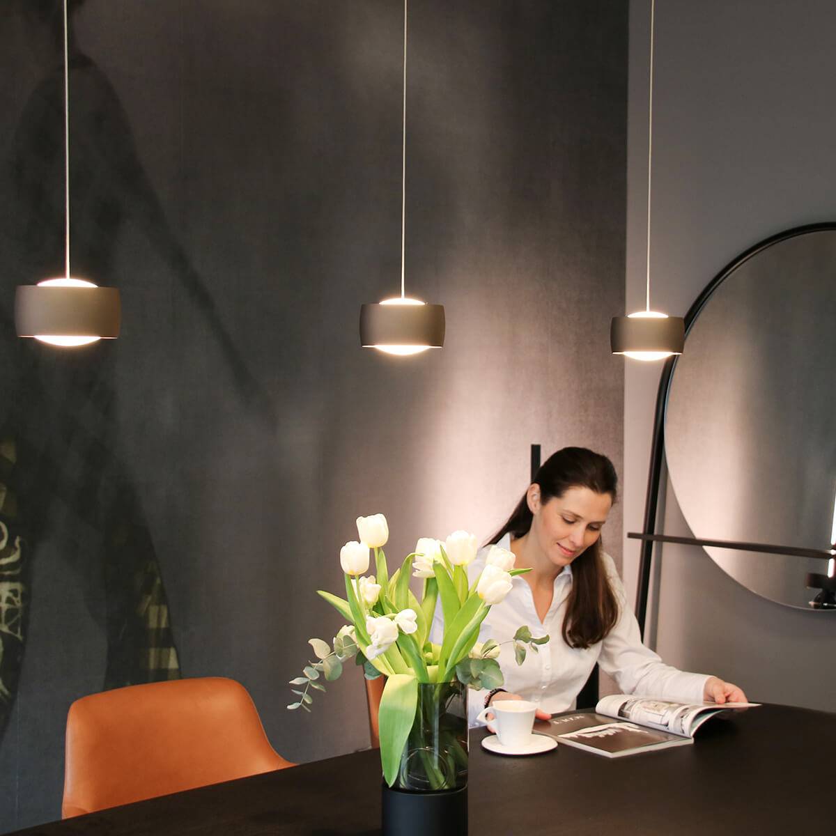 Die dreiflammige Grace LED Pendelleuchte verfügt über zwei Lichtsteuerungsoptionen: Über die integrierte Gestensteuerung lassen sich die Pendel einzeln berührungslos schalten und dimmen. Noch komfortabler gestaltet es sich mit der Smartphone-Funktion, die es erlaubt, die gesamte Lampe – auch die Lichtfarbtemperatur – via Casambi-App vom Smartphone oder Tablet aus zu steuern.
