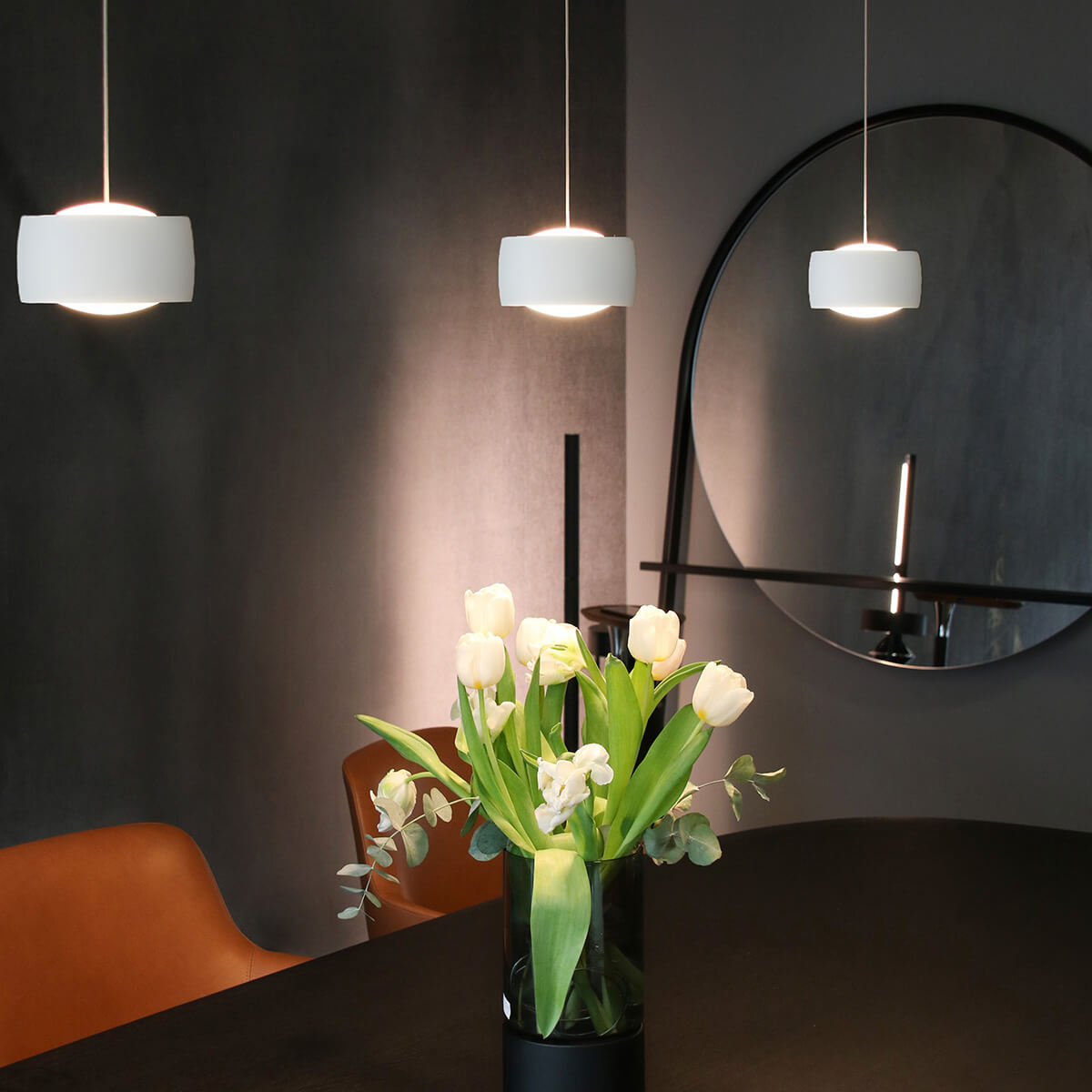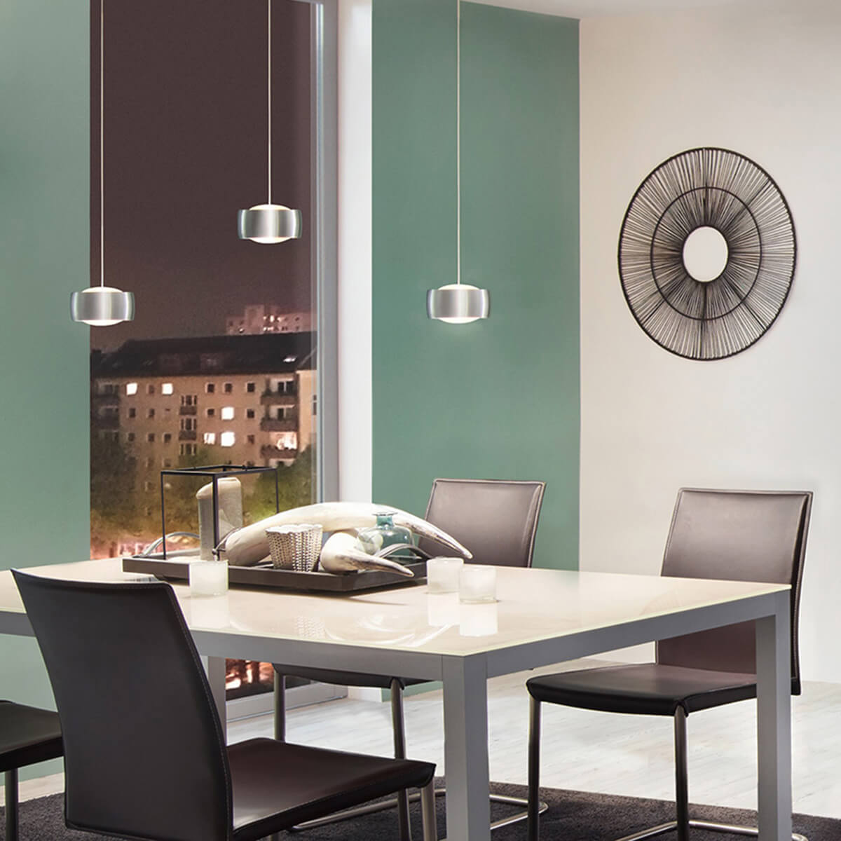 Die dreiflammige Grace LED Pendelleuchte verfügt über zwei Optionen zur Lichtsteuerung: Über die integrierte Gestensteuerung lassen sich die Pendelmodule einzeln berührungslos schalten und dimmen. Noch komfortabler gestaltet es sich mit der Smartphone-Funktion, die es erlaubt, die gesamte Lampe – auch die Lichtfarbtemperatur – via Casambi-App vom Smartphone oder Tablet aus zu steuern.