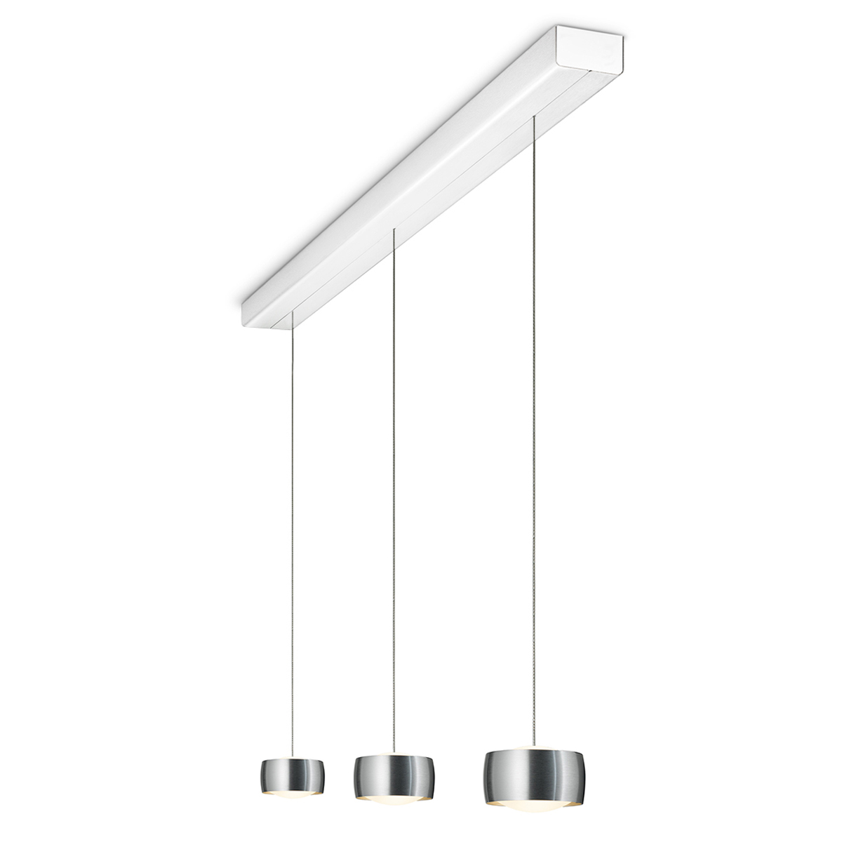 Die dreiflammige Grace LED Pendellampe verfügt über zwei Lichtsteuerungsoptionen: Über die integrierte Gestensteuerung lassen sich die Lampenschirme einzeln berührungslos schalten und dimmen. Noch komfortabler gestaltet es sich mit der Smartphone-Funktion, die es erlaubt, die gesamte Leuchte – auch die Lichtfarbtemperatur – via kostenloser Casambi App aus zu steuern.