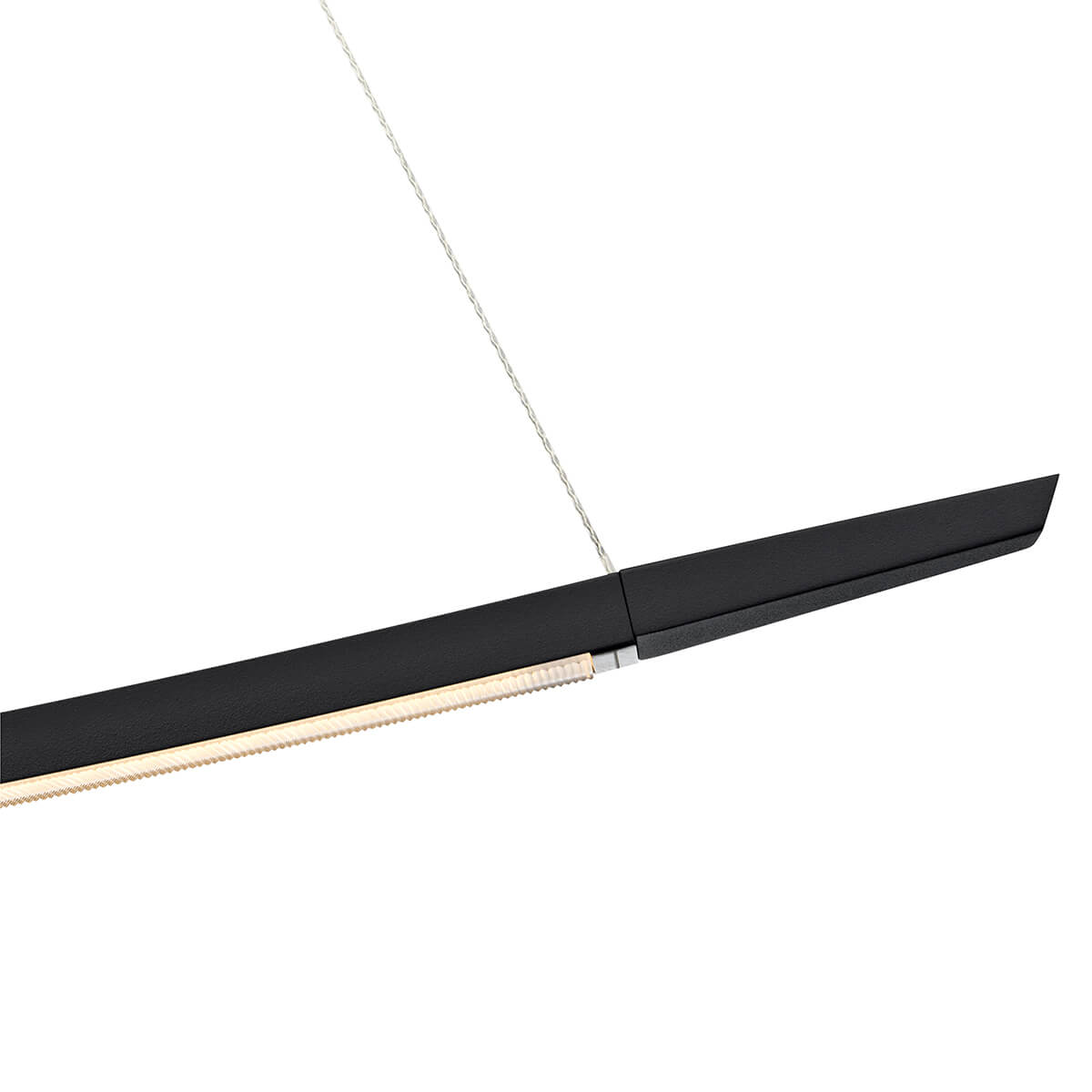 Der schlanke Leuchtenkörper zeichnet sich durch seine elegant gebogene Form aus, die einem sanft geschwungenen Schwert gleicht und das Lichtfeld aus Acrylglas umfasst. Die Beleuchtung ist harmonisch und blendfrei, ideal für größere Esstische in Küche oder Esszimmer. Das besonders weiche Lichtbild verdankt sich der hochwertigen, facettenreichen Prismatik, ein Kennzeichen der Oligo LED-Leuchten. Der hohe CRI-Wert von 90 bringt Ihre Speisen (und Gäste) brillant und farbecht zur Geltung.