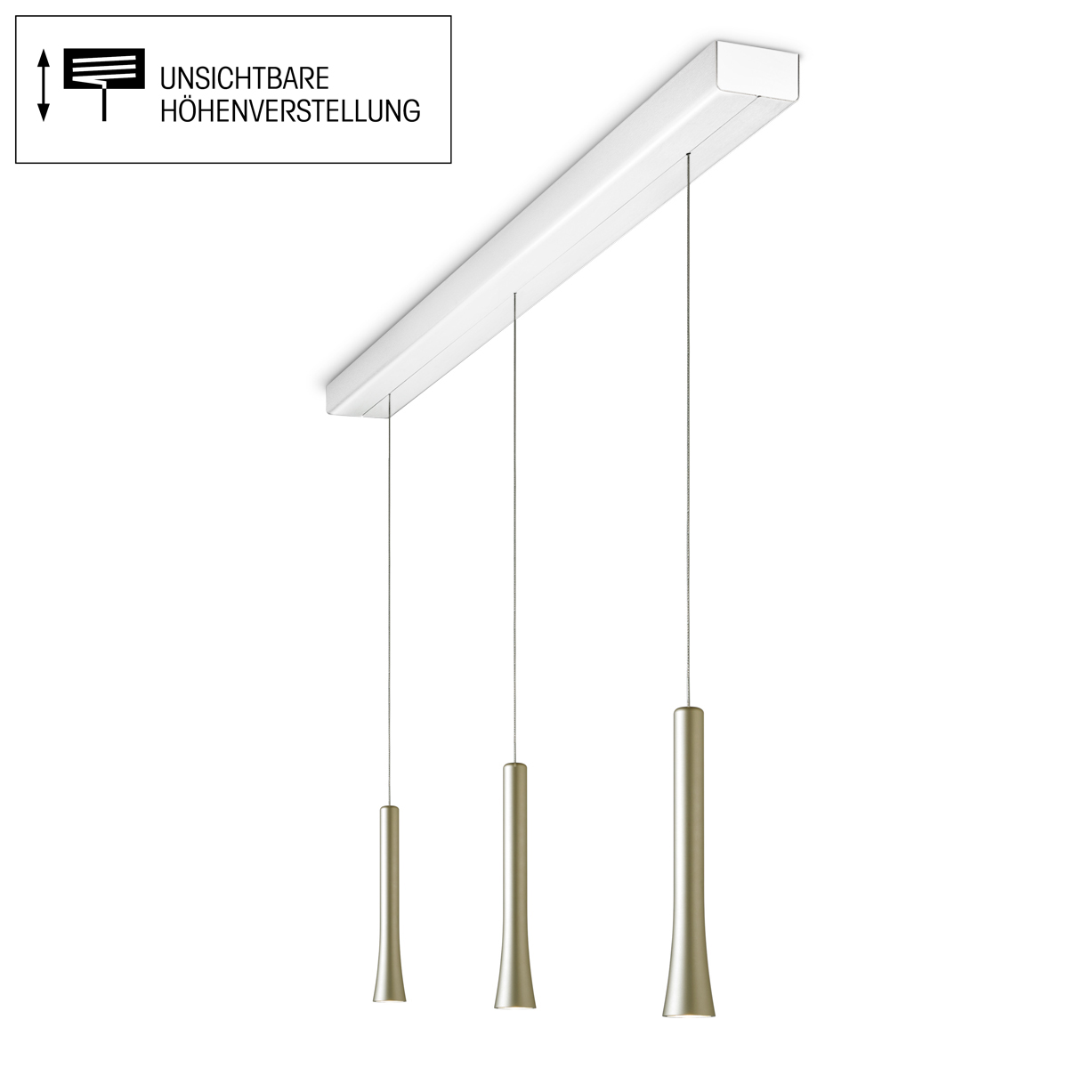 Die dreiflammige Oligo Rio LED Pendelleuchte ist eine höchst funktionelle, moderne Lichtquelle, die sich vor allem über länglichen Esstischen empfiehlt. Die Leuchte verfügt über einen unsichtbar im Baldachin integrierten Kabelaufzug, der eine komfortable Höhenregulierung ermöglicht (Verstellbereich 70 bis 230 cm). Durch einfaches Bewegen der Leuchtenpendel lässt sich die Pendelhöhe bedarfsgerecht einstellen – stufenlos, leichtgängig und immer wieder neu.