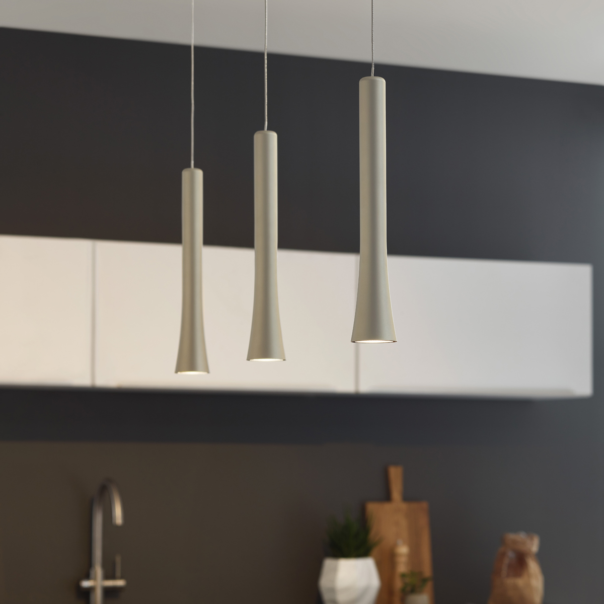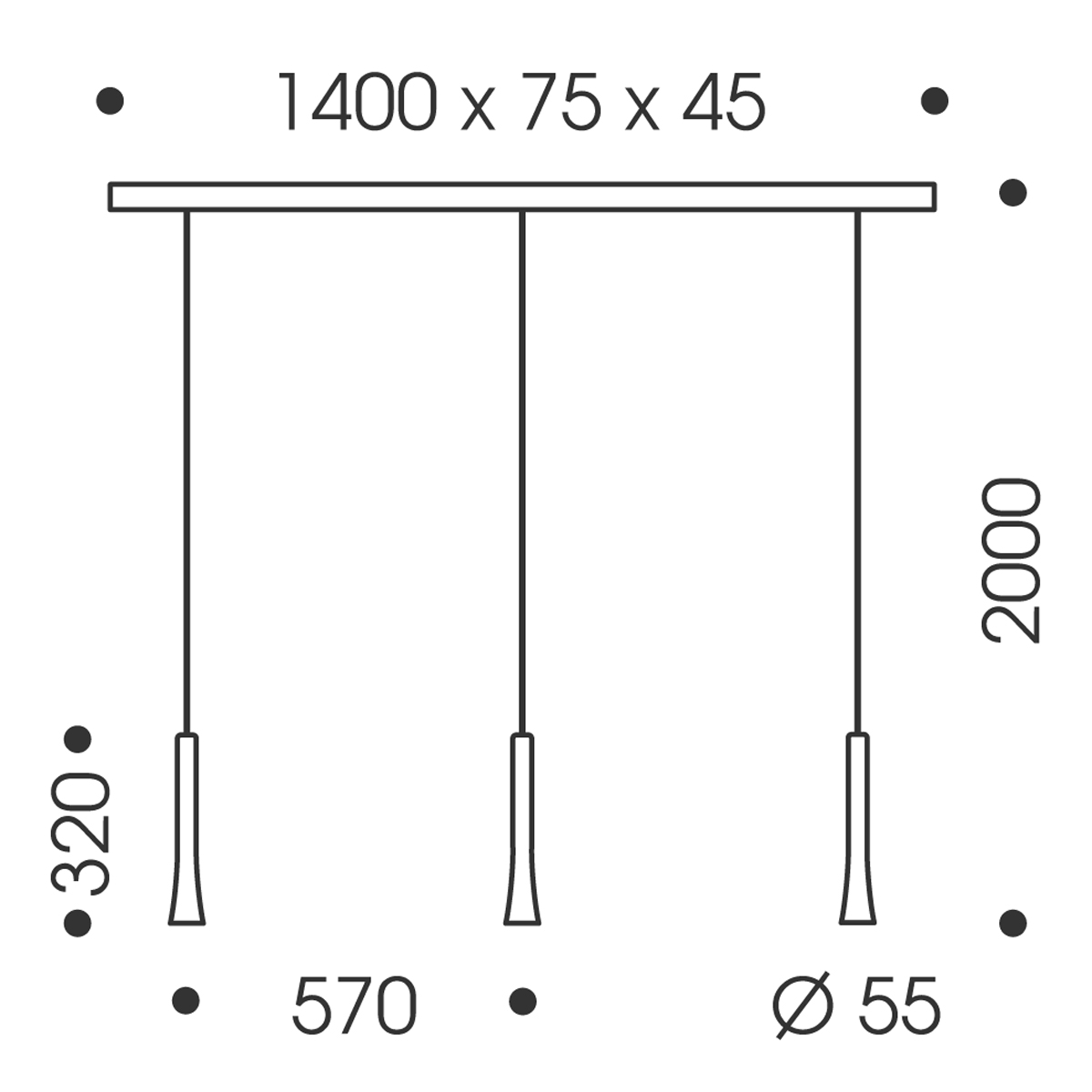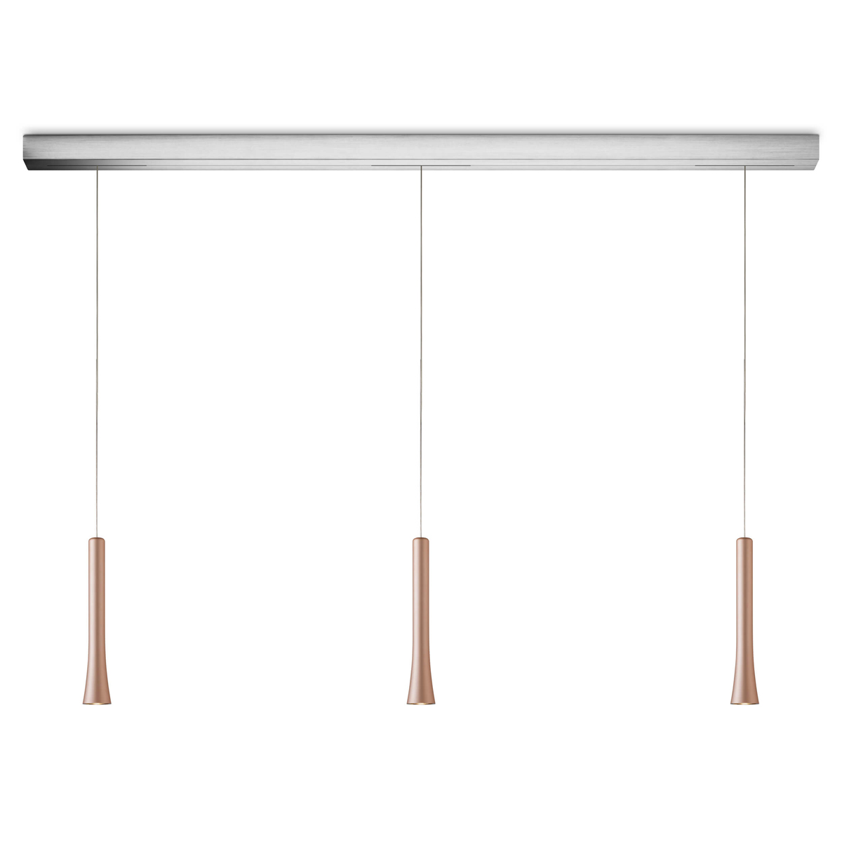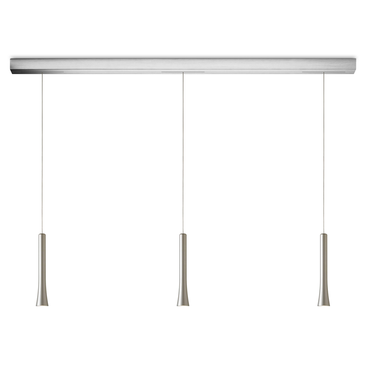 - Die Abstände der Leuchtenpendel zueinander sowie in ihrer Pendelhöhe lassen sich bei der Montage anhand dreier Montagepunkte feinjustieren