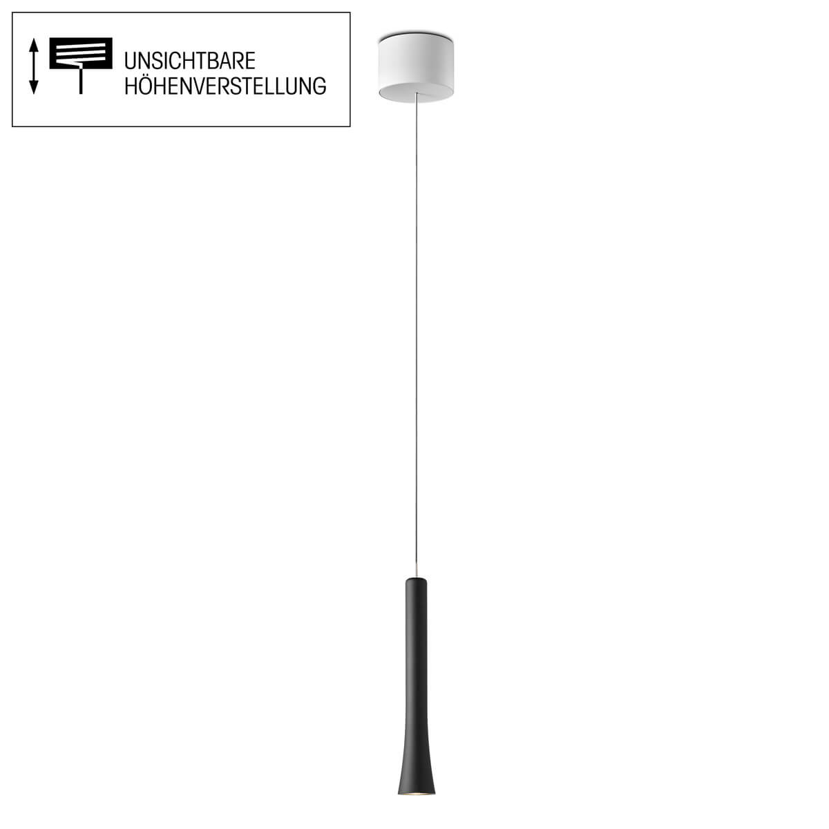 Funktionalität in Perfektion: Die Oligo Rio LED Pendelleuchte verfügt über einen unsichtbar im Baldachin integrierten Kabelaufzug, der eine stufenlose und besonders komfortable Höhenverstellerung ermöglicht (Verstellbereich 70 bis 230 cm). Durch einfaches Bewegen des Leuchtenpendels bzw. der Pendelabhängung lässt sich die Pendelhöhe bedarfsgerecht variieren.