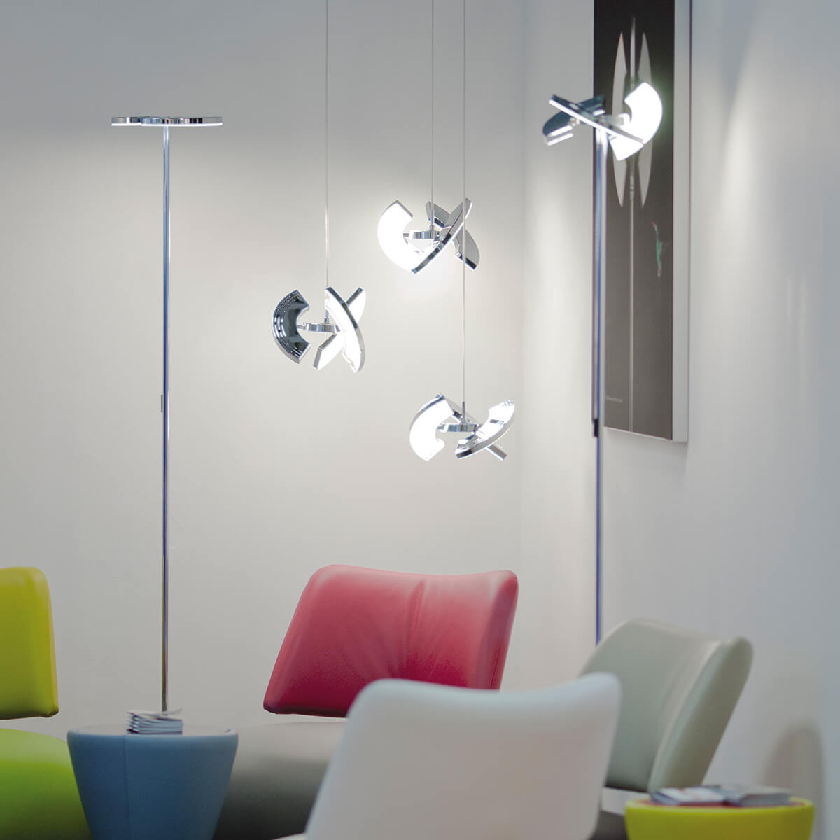Oligo Trinity LED Stehleuchte, Chrom, und Oligo Trinity LED Pendelleuchte, Chrom