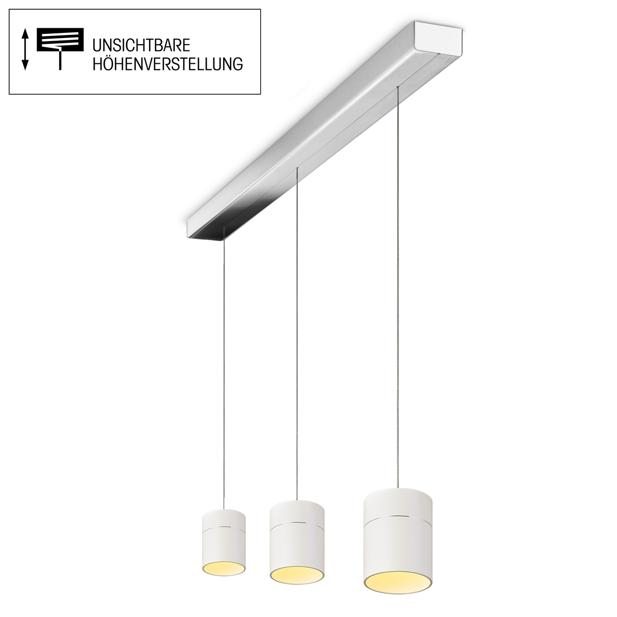 Tudor M LED Pendelleuchte, 3-flg., TW, unsichtbare Höhenverstellung, Baldachin: Chrom