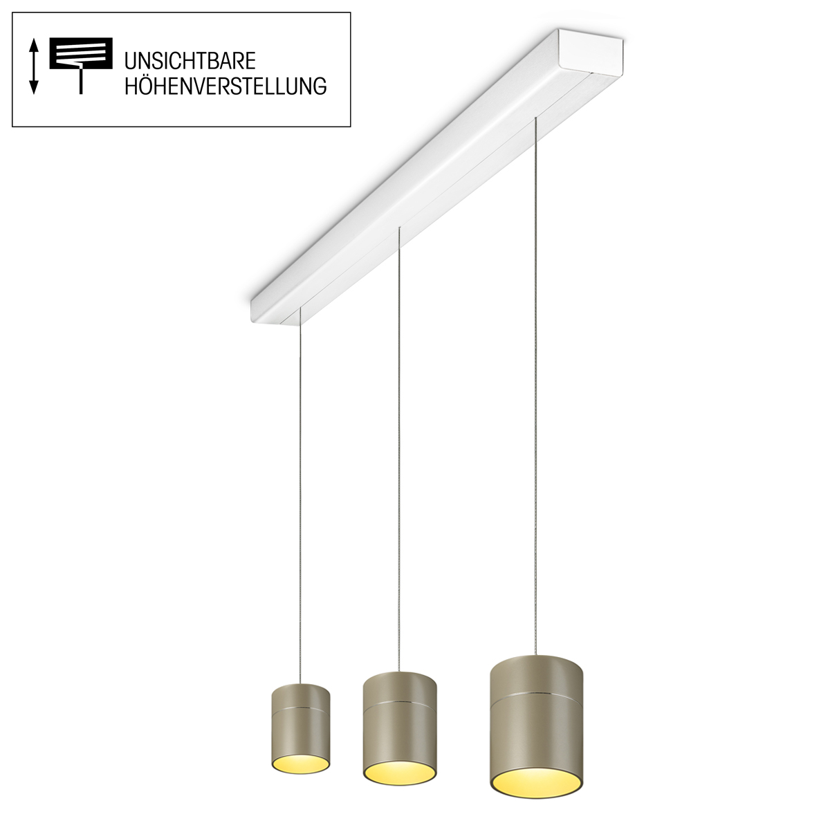 Tudor M LED Pendelleuchte, 3-flg., TW, unsichtbare Höhenverstellung, Baldachin: weiß matt