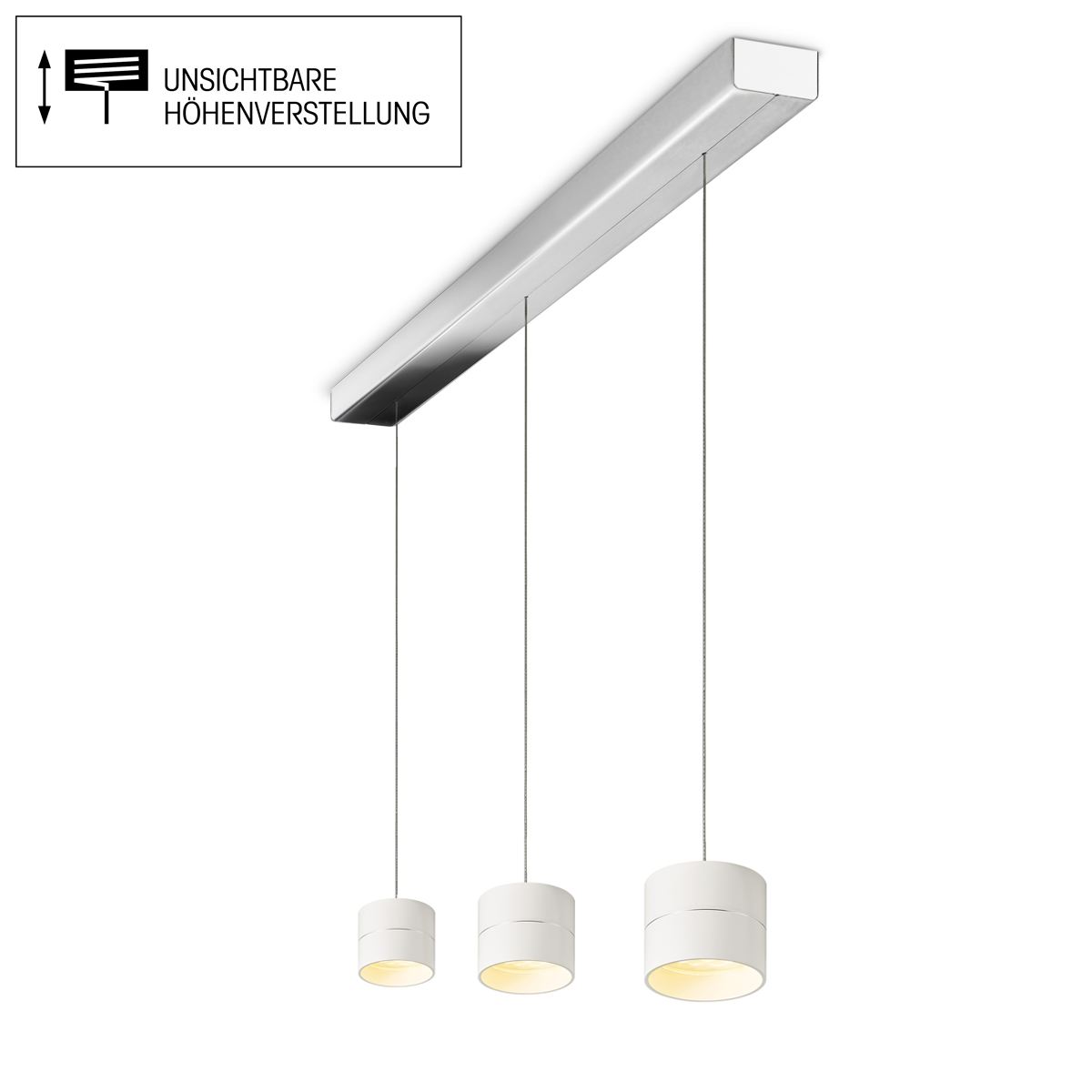 Tudor S LED Pendelleuchte, 3-flg., TW, unsichtbare Höhenverstellung, Baldachin: Chrom