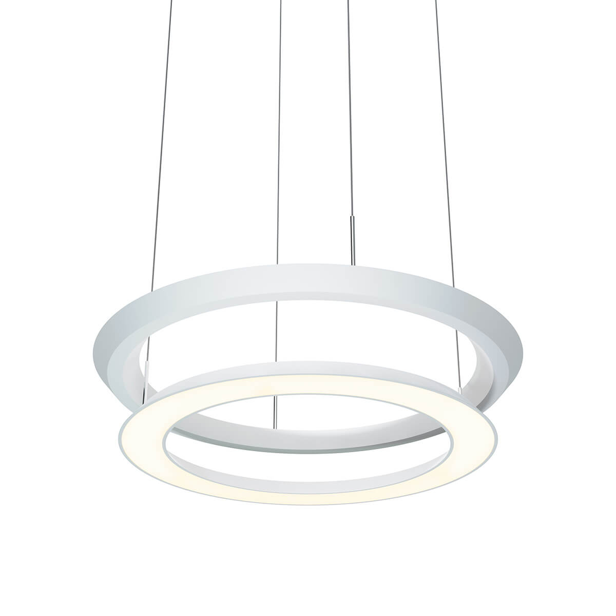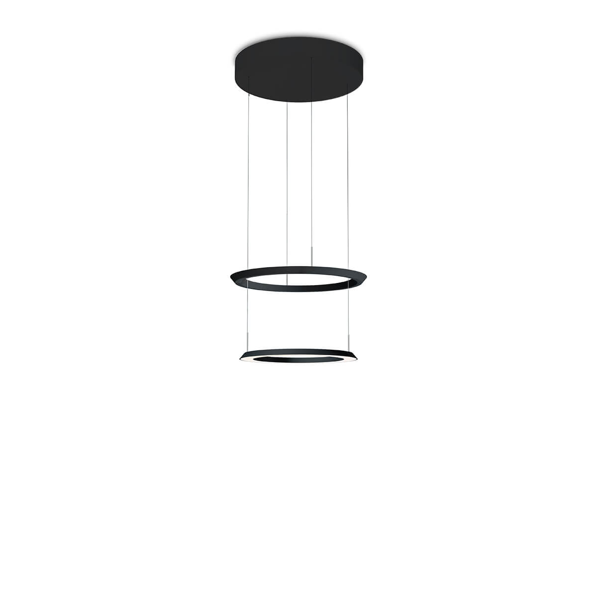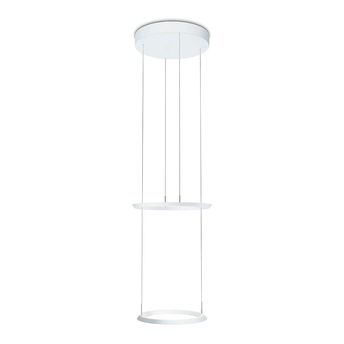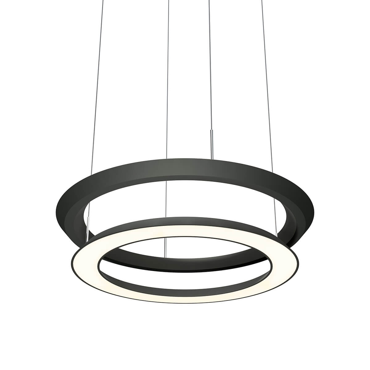 Der besondere Clou: Beide Ringe der Yano lassen sich unabhängig voneinander in ihrer Auszugslänge verändern. Möglich macht dies eine unsichtbar im Baldachin integrierte Seilaufwicklung. Dabei ist der Abstand zwischen den Ringen variabel. In der engsten Einstellung schmiegen sich die Ringe ineinander und verschmelzen zu einer gemeinsamen Form aus Licht. Auseinandergezogen bilden sie ein spannendes Konstrukt im Raum.