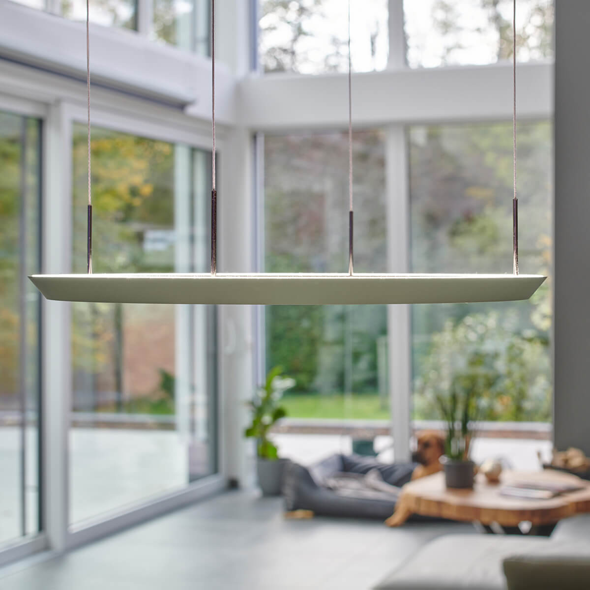 Mit der Yano Pendelleuchte hat die deutsche Manufaktur Oligo ein Produkt entwickelt, das nicht nur besonders grazil anmutet, sondern auch mit seiner vielseitigen Anwendung sowie lichttechnischen Raffinesse begeistert. Über Tischen und Theken lädt die Leuchte zum Verweilen ein, egal ob Sie zum Dinner zusammenkommen oder sich für die gepflegte Lektüre am Esstisch zurücklehnen möchten.