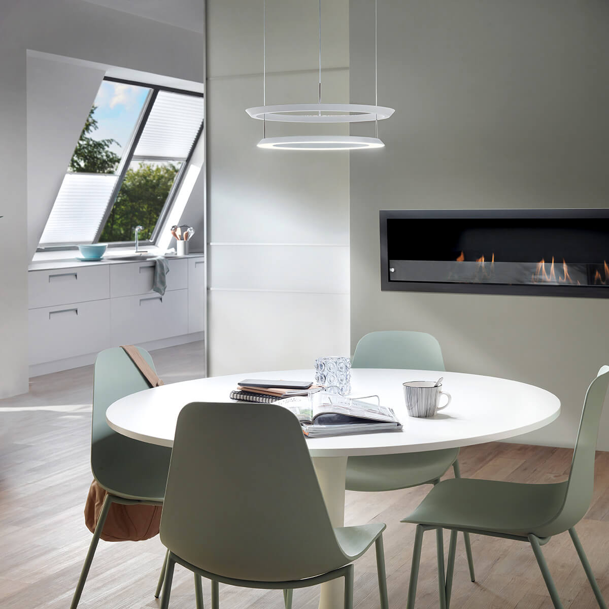 Für eine konzentrierte Lektüre oder die Erledigung der Hausaufgaben empfiehlt sich eine neutralweiße, kühle Lichtfarbtemperatur. Diese wirkt anregend und steigert die Konzentration. Zum Feierabend und gemütlichen Abendessen hingegen darf es behaglicher zugehen, wofür sich eine warmweiße Lichtfarbe empfiehlt.