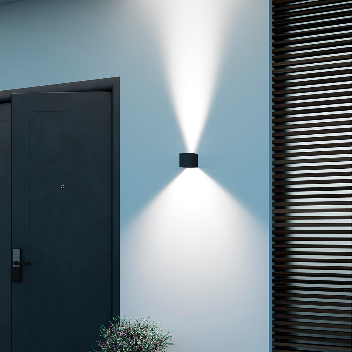 - Kubische Outdoor-Wandlampe mit moderner Linienführung