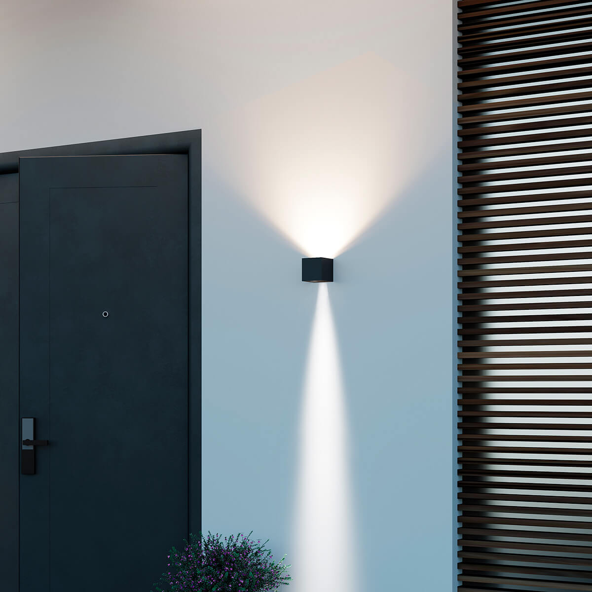 Ausgestattet mit einer LED-Lichtquelle, die ein angenehmes Licht von 3.000 Kelvin ausstrahlt, bietet die Colfa eine Kombination aus direktem und indirektem Lichtaustritt. Dies ermöglicht eine effektvolle Akzentbeleuchtung, die Hauswände gekonnt aufwertet. Die Leuchte verfügt über zwei verstellbare Blenden, die es erlauben, die Abstrahlwinkel zwischen 10° und 90° einzustellen. So kann das Licht entweder gebündelt oder breit gestreut werden, je nach Wunsch und ästhetischem Empfinden. Bitte beachten Sie, dass Uplight und Downlight nicht unabhängig voneinander regulierbar sind, sondern stets synchron angepasst werden.