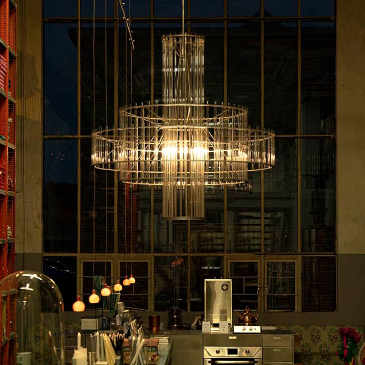 Besonders eindrucksvoll ist die Wirkung des Lichts. Die schmalen Glasröhren brechen das Licht auf subtile Weise, wodurch eine strahlende, warme und zugleich repräsentative Atmosphäre entsteht. Der Leuchter eignet sich damit ideal für großzügige Wohnräume, moderne Salons, hohe Treppenhäuser oder offene Raumflächen in Gastronomie, Lobby, Showroom und Museum. Überall dort, wo Licht als Teil der Architektur verstanden wird, entfaltet dieser Design-Kronleuchter seine volle Stärke.