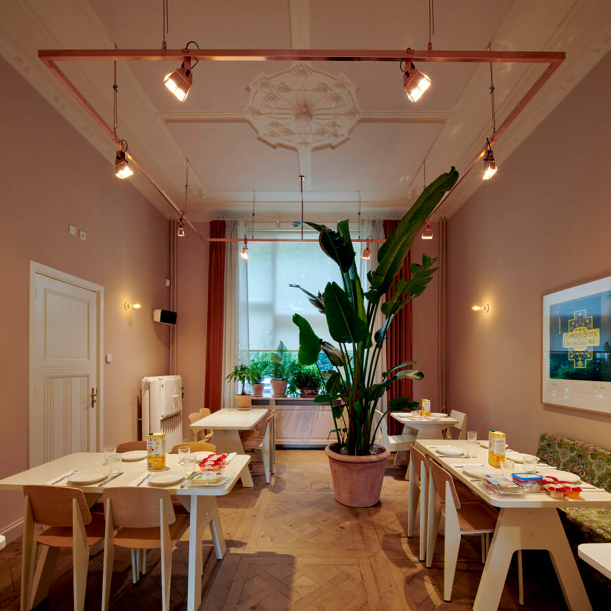 Erhältlich in Aluminium, Messing und Kupfer, steht der Deckenstrahler exemplarisch für das Streben von Piet Hein Eek nach Authentizität. Die Metallteile sind unbehandelt und legen den handwerklichen Prozess offen: Feine Spuren der Fertigung werden nicht verborgen, sondern prägen den Charakter jedes einzelnen Stücks. Darüber hinaus entwickeln die Leuchten mit der Zeit eine eigene Patina, die ihnen zusätzliche Ausdruckskraft verleiht. Wer diesen lebendigen Alterungsprozess schätzt, lässt ihn bewusst entstehen; wer eine ruhigere Optik bevorzugt, kann die Oberfläche vorsichtig nachpolieren.