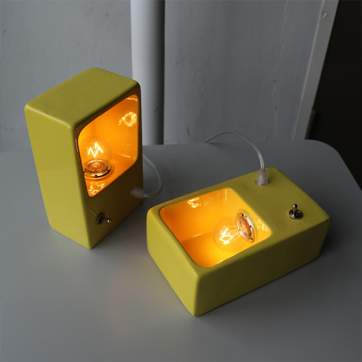 Operation is straightforward via a toggle switch located directly on the body. Thanks to the E14 socket, you can fit the ceramic lamp with an energy-saving LED bulb of your choice and adjust the lighting ambiance to suit the application. A soft cloth is sufficient for cleaning; alcohol or solvents should be avoided.