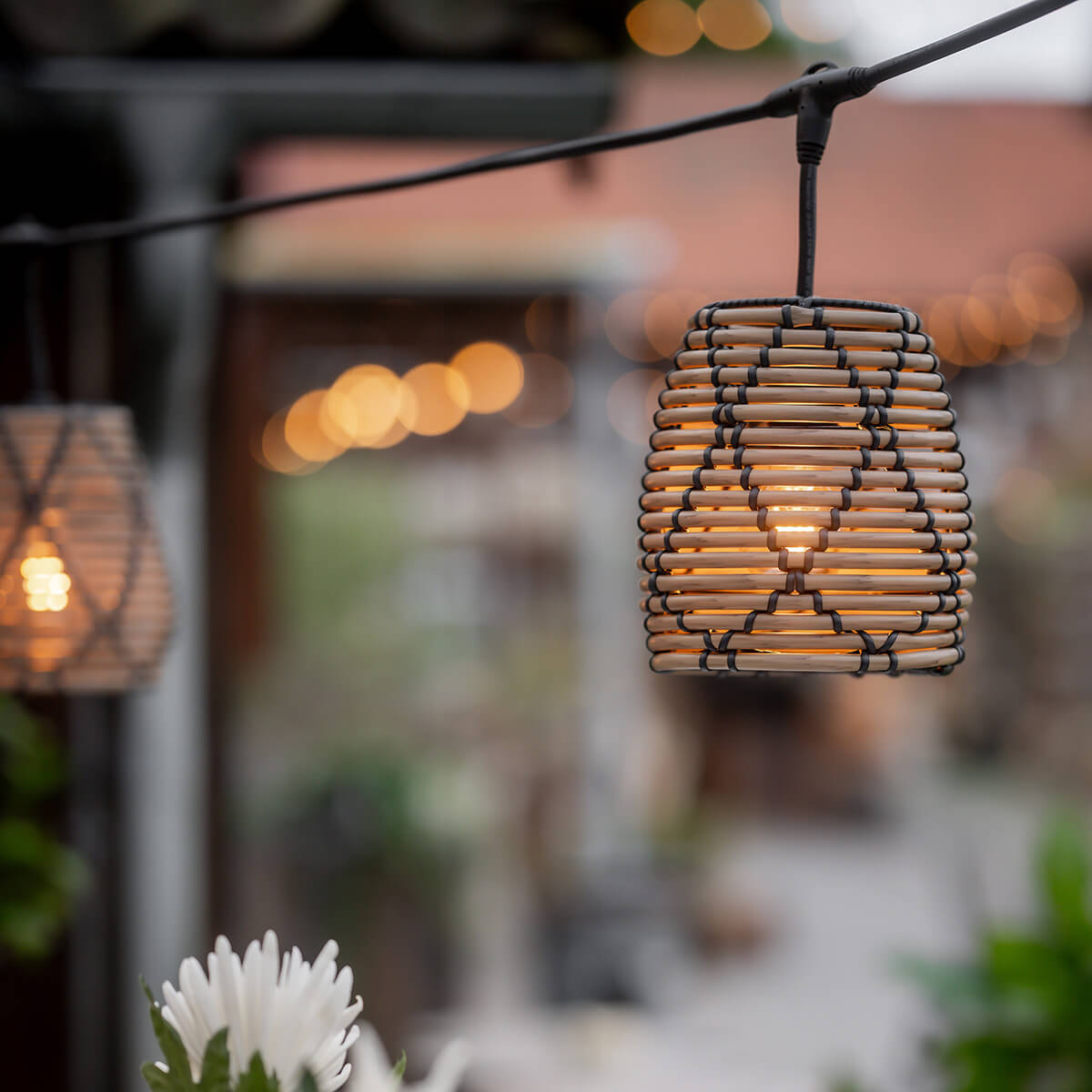 - Elegante Outdoor-Lichterkette mit natürlichem, modernem Look