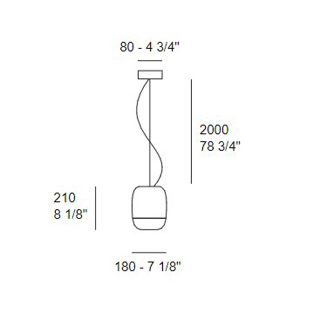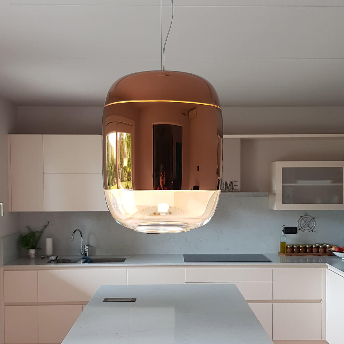 Prandina Gong S1 Pendelleuchte: modernes Pendel mit mundgeblasenem Glasschirm