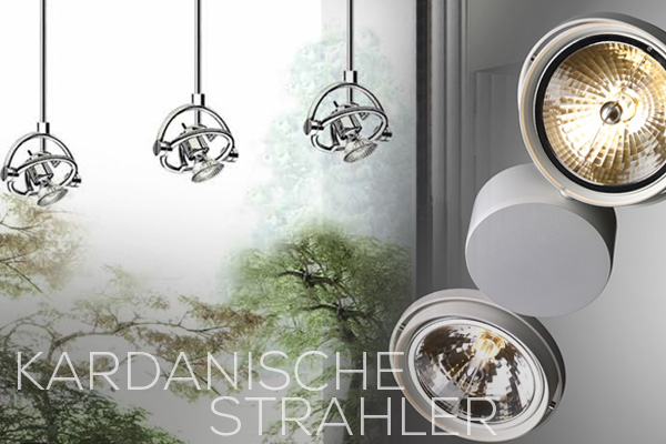 Kardanische Strahler kann man aufgrund ihrer präzise durchdachten Lagerung äußerst frei in verschiedene Richtungen drehen. Die Quintessenz ist ein exakt ausgerichteter Lichtkegel, der einen bestimmten Bereich oder Gegenstand erhellt. Vorteilhaft ist die Flexibilität beispielsweise bei der Inszenierung von Kunstwerken im Museum oder der attraktiven Produktpräsentation im Shop. In Wohnräumen finden sich ebenfalls zahlreiche Anwendungen für eine punktgenaue Beleuchtung.