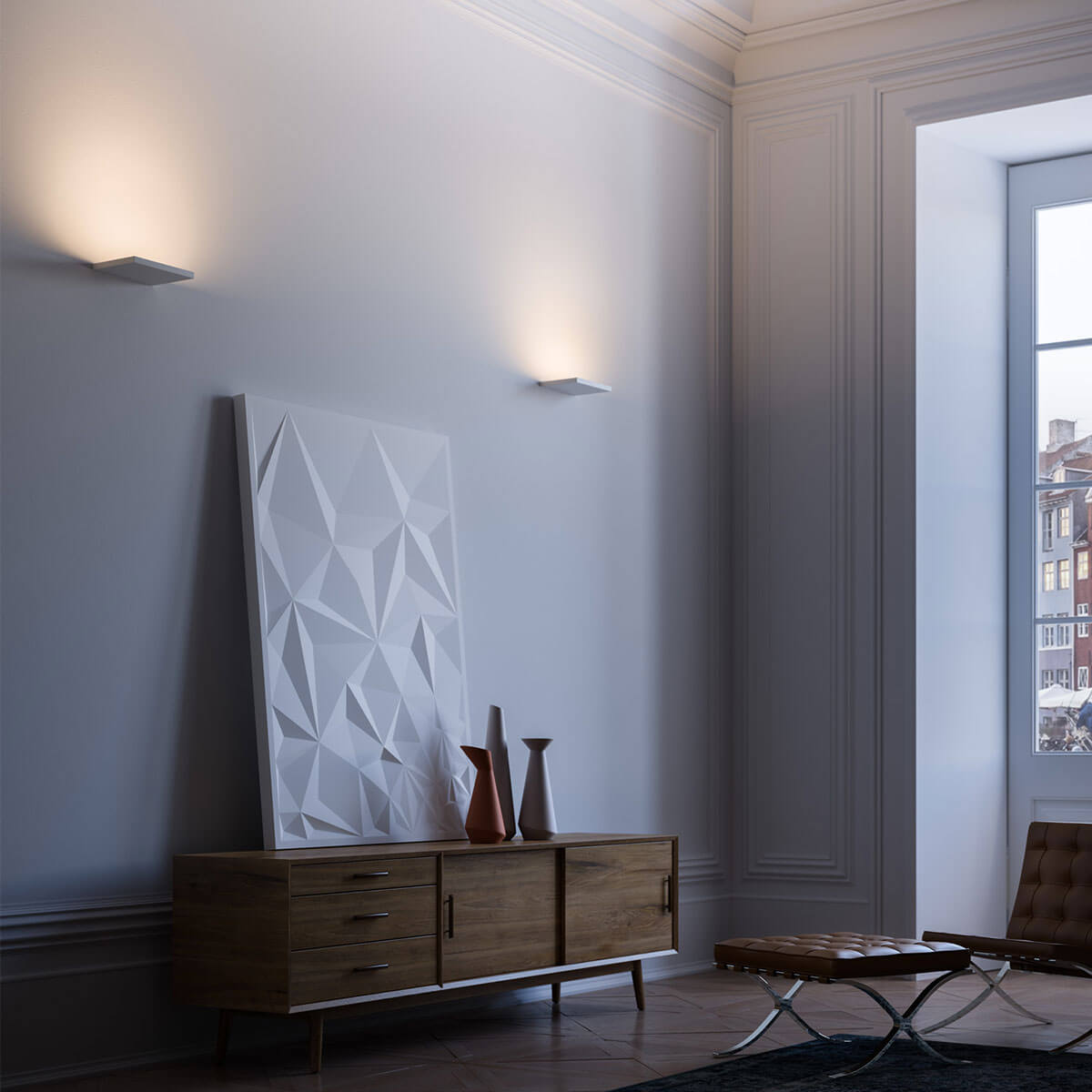 - Superflache, kleine Wandleuchte für modern eingerichtete Wohnräume