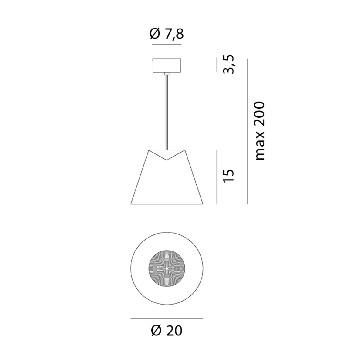 | Diameter: | Canopy: 7.8 cm, lamp head: top 10 cm + bottom 20 cm |