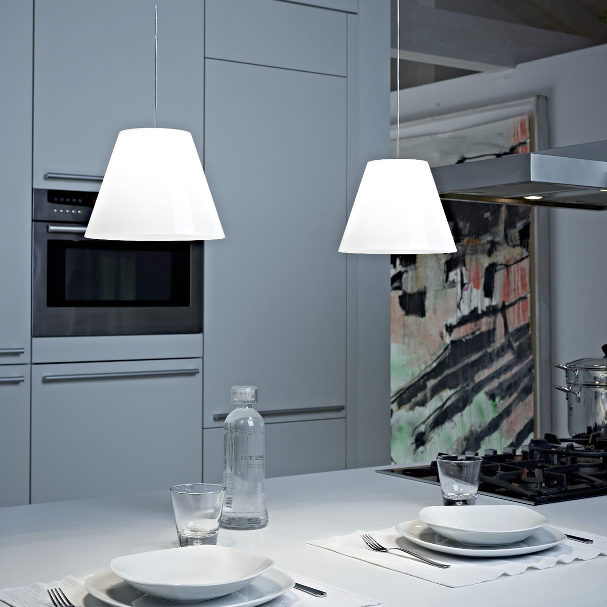 Die Dina H1 Pendelleuchte von Rotaliana ist mit einer LED-Lichtquelle ausgestattet. Der Diffusor aus Polycarbonat, durchsichtig, farbig oder verchromt, hat eine moderne Form und fügt sich daher sehr gut in viele Wohnstile ein. Das Licht ist weich und warm, perfekt über dem Esstisch, in der Küche oder im Wohnraum.