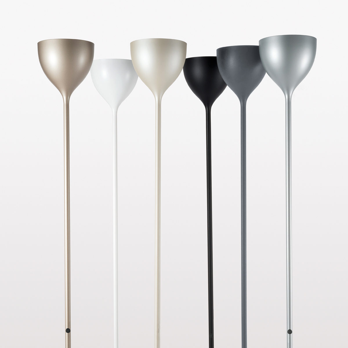 - Schlanker Deckenfluter mit kelchförmigem Leuchtenkopf