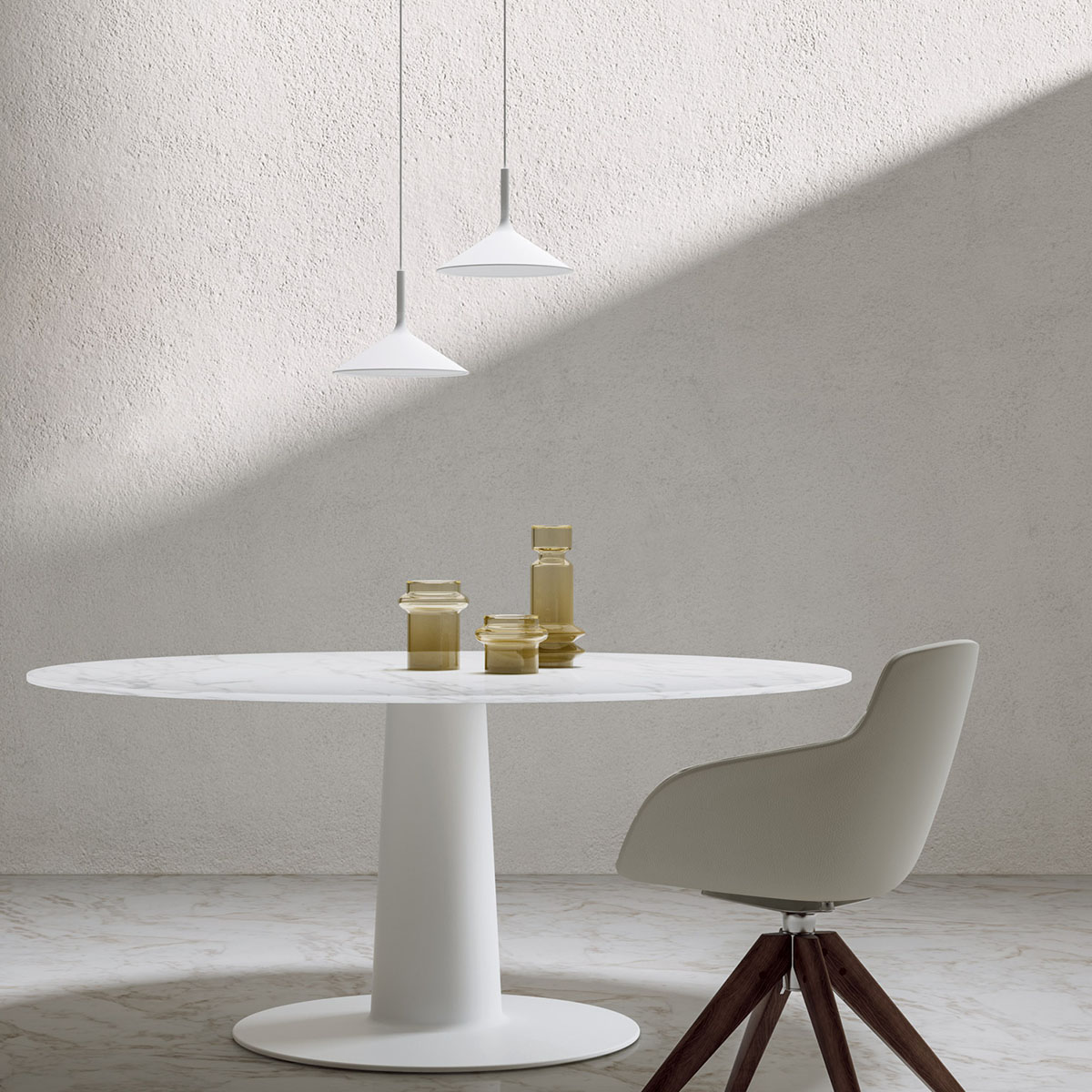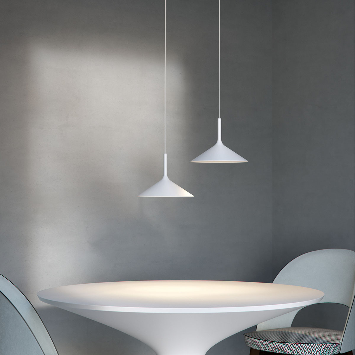 - Kleine, kelchförmige Pendelleuchte mit einem Lampenschirm, geeignet zur Beleuchtung in der Küche über kleinere Esstische