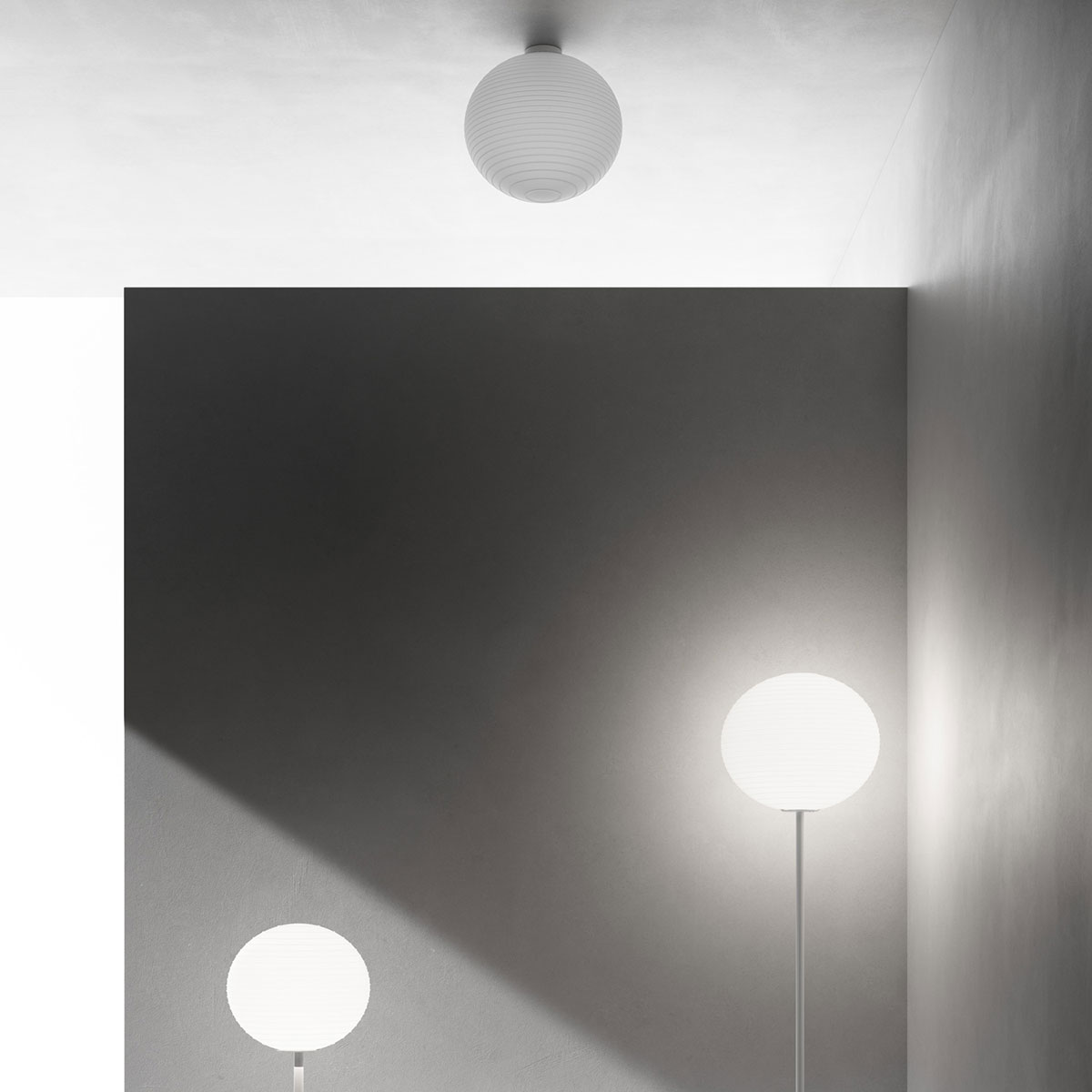 - Runde Deckenleuchte, dessen Design des Lampenschirms an die orientalischen Laternen aus Papier erinnert