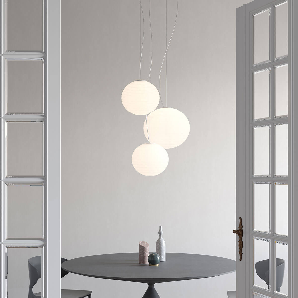 - Runde Pendelleuchte, dessen Design des Lampenschirms an die orientalischen Laternen aus Papier erinnert