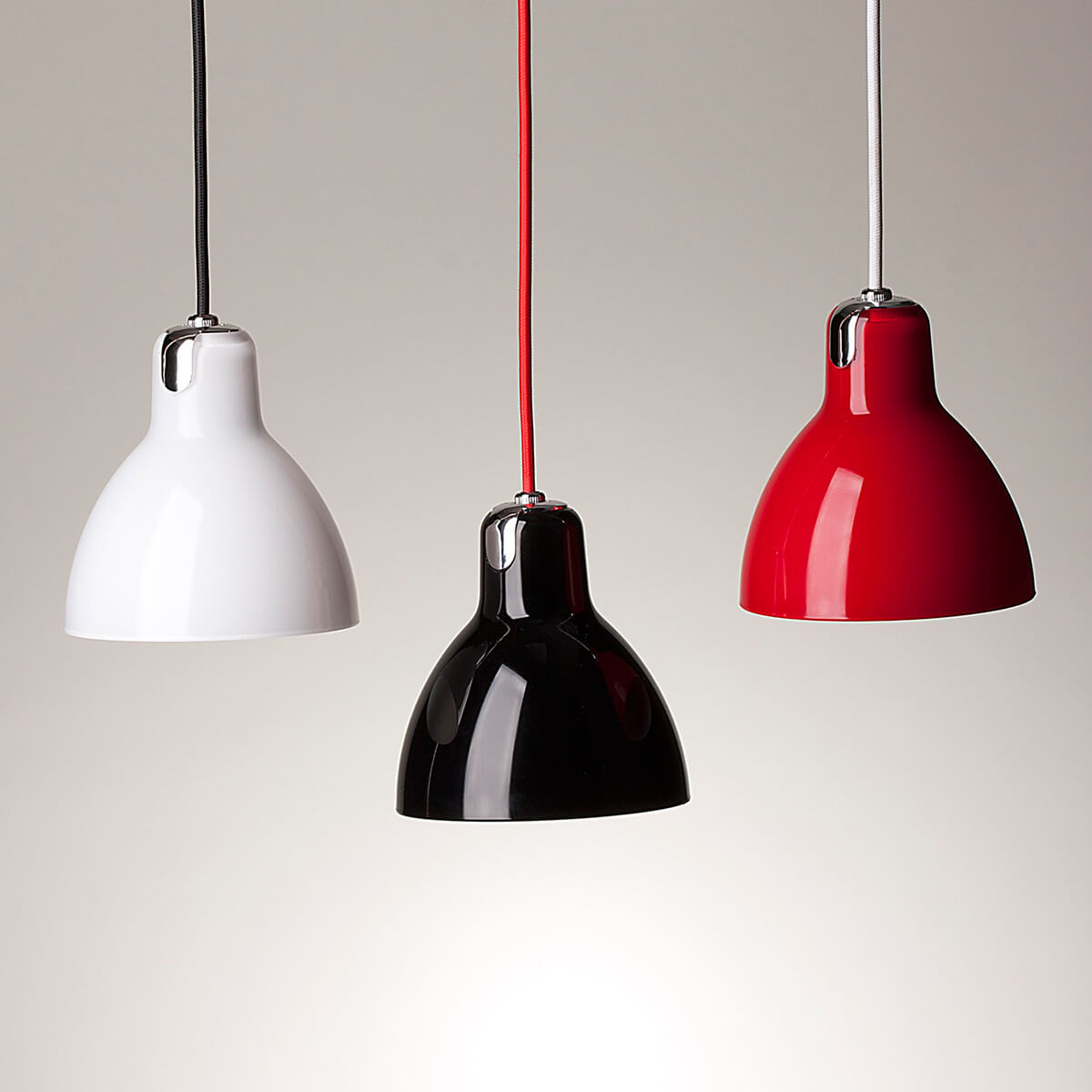 - Farbenfrohe Pendelleuchte mit textilummantelten Kabeln