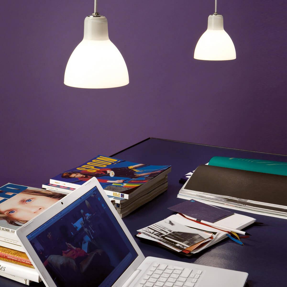 - Innen sandgestrahlter Leuchtenschirm aus farbig lackiertem Glas