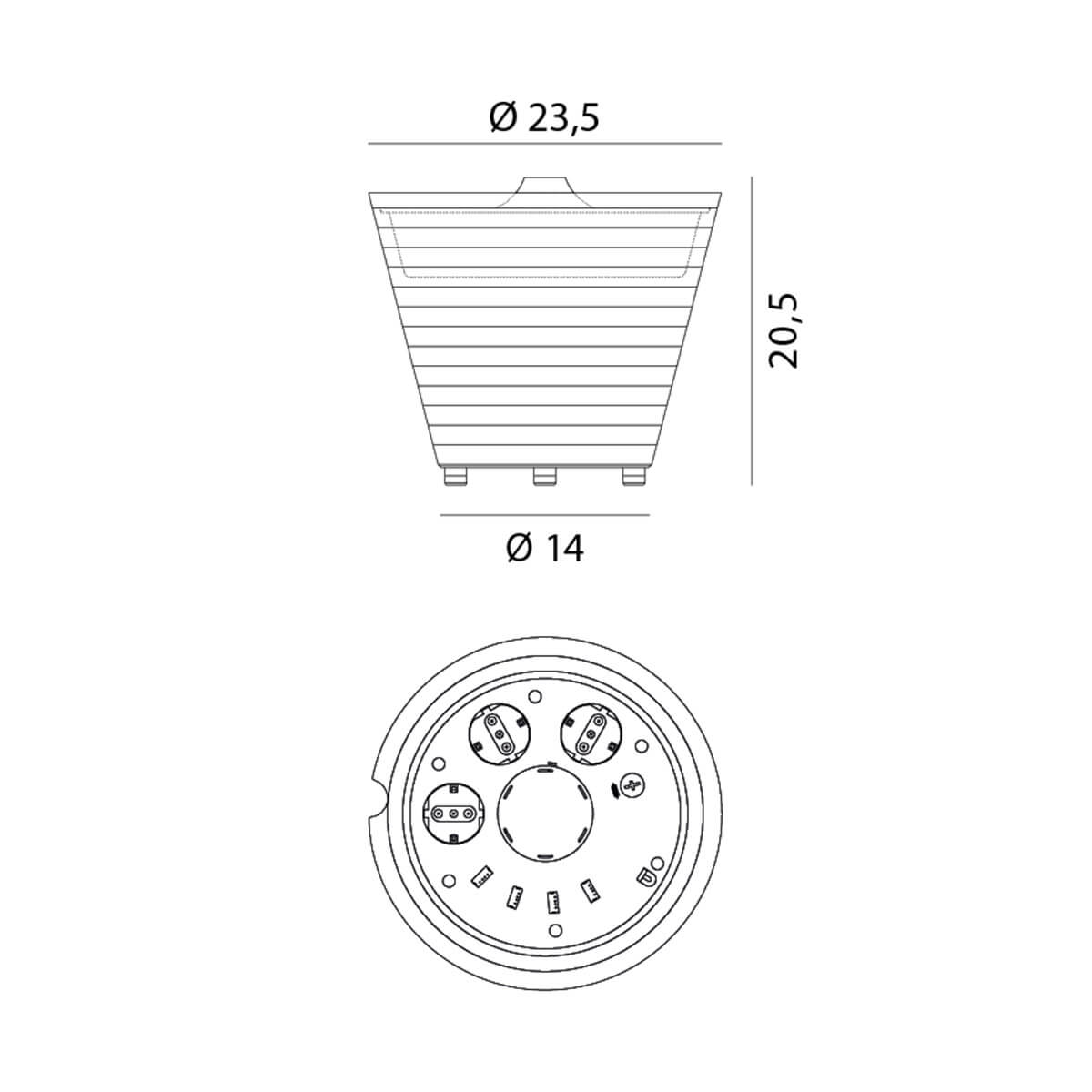 Modern ist auch die Form der Rotaliana MultiPot+ LED Tischleuchte. Die klare Linie spiegelt die archetypische Form einer kegelförmigen Vase – eine diskrete und vertraute Form, die nicht von den eigentlichen Qualitäten der MultiPot+ LED ablenkt.