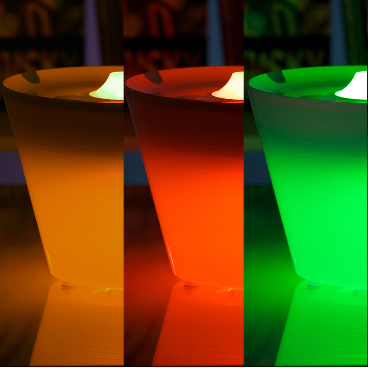 Für ein optimales Stimmungslicht sorgen integrierte RGB-LEDs, die unterschiedliche Lichtfarben erzeugen und das Ambiente somit maßgeblich mitbestimmen: Mittels einer rot getönten Lichtausstrahlung lässt sich eine sinnliche Atmosphäre kreieren, grünes Licht hingegen wirkt entspannend und beruhigend.