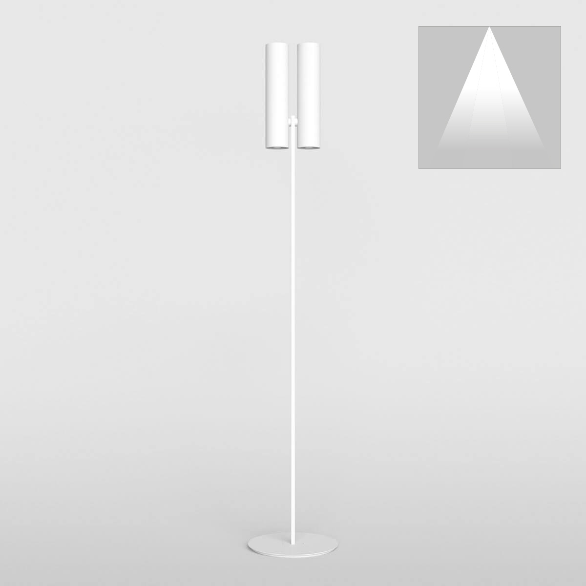 Rotaliana Tobu F1 LED Stehleuchte, weiß matt und schwarz matt, die Leuchtenköpfe sind um 45° nach links und rechts schwenkbar
