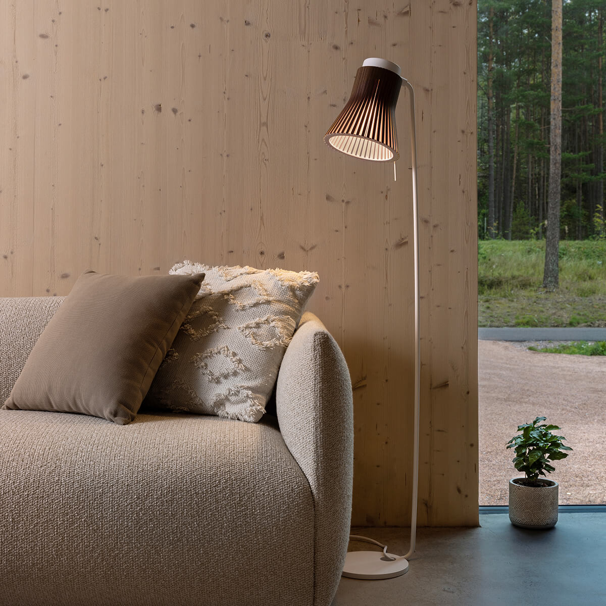 Die Petite 4610 Stehleuchte von Secto Design ist ein Meisterwerk skandinavischer Handwerkskunst, das Funktionalität und zeitloses Design aufs Schönste vereint. Entworfen von dem finnischen Designer Seppo Koho, bringt die formschöne Leuchte natürliche Eleganz in jedes Zuhause, veredelt jedoch auch öffentliche Innenräume wie Lobbys und Büros.